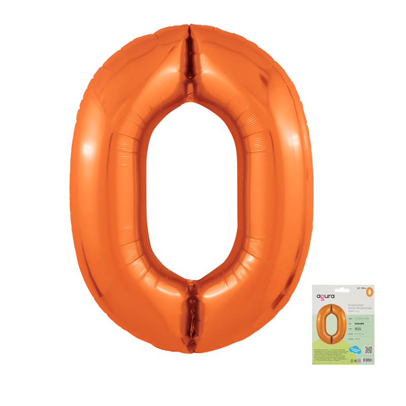 Цифра 0 Папайя SLIM в упаковке, фольгированные шары