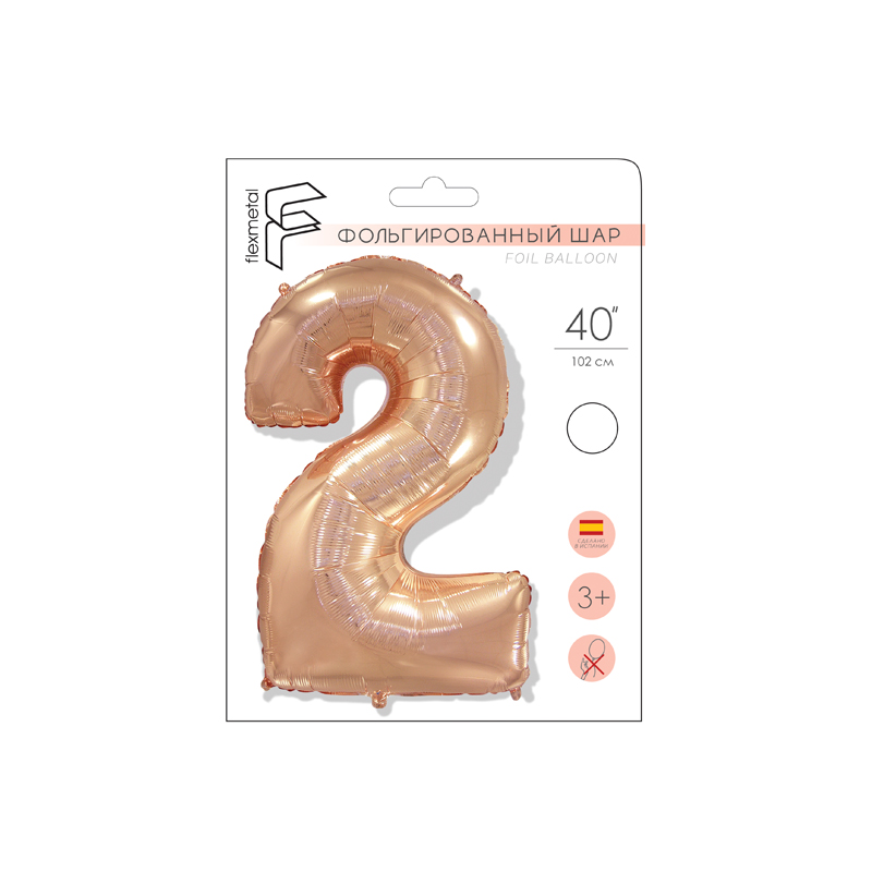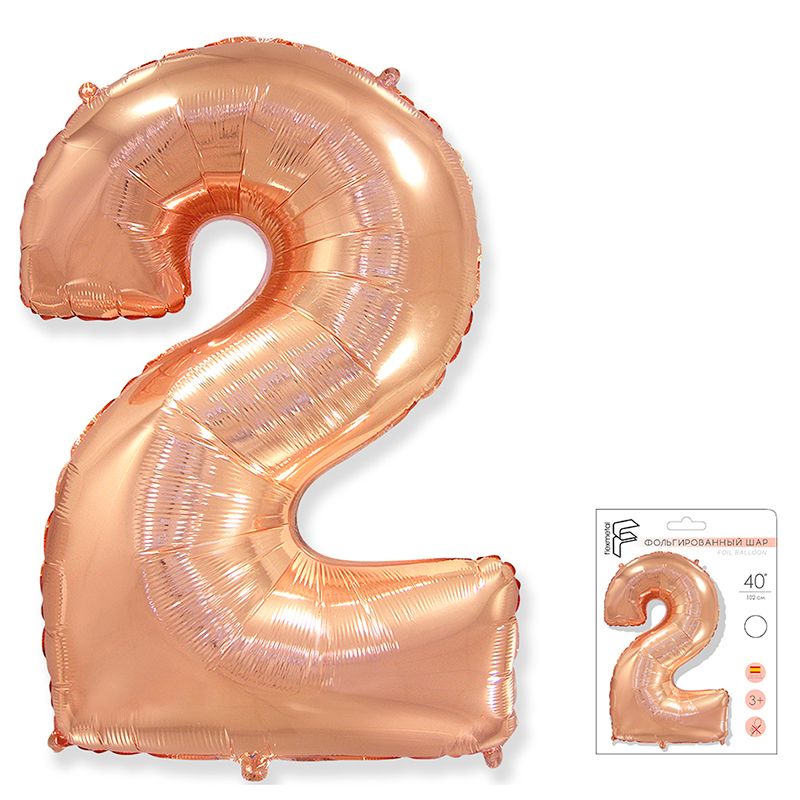 Цифра 2 Розовое золото в упаковке / Two, фольгированный шар