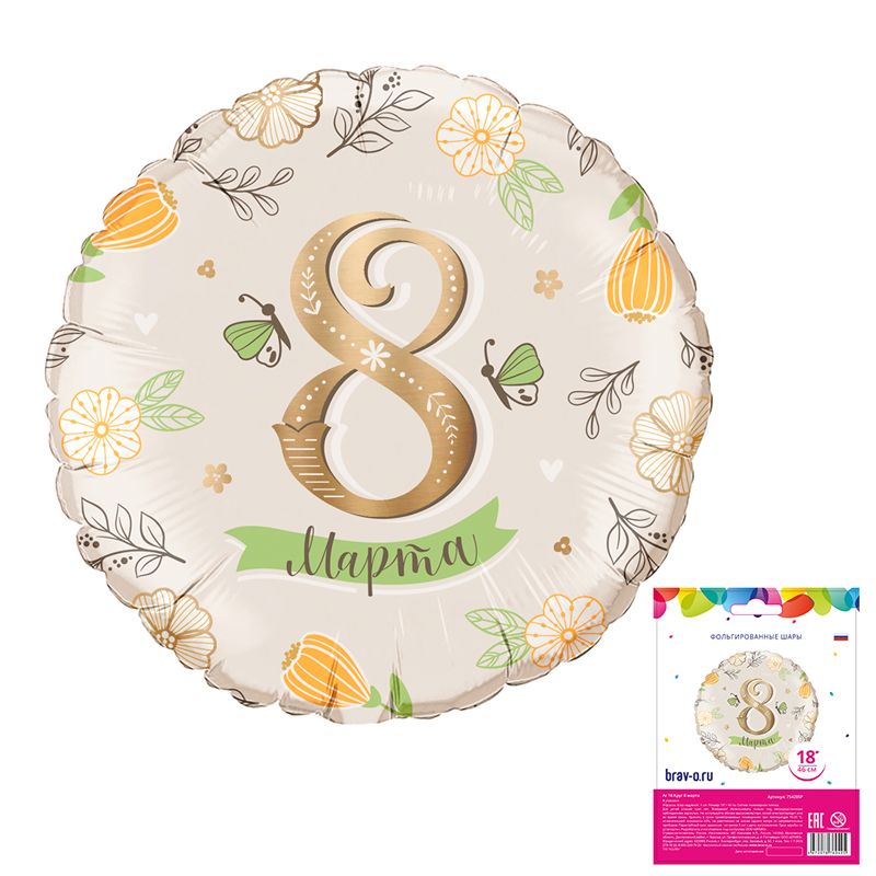 8 марта (Дизайн ООО БРАВО) в упаковке, фольгированный шар
