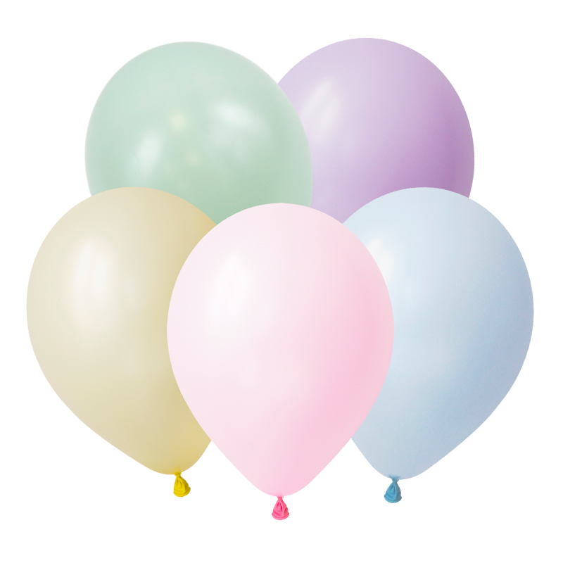 Линейка шаров представлена в размерном ряду:R-5”, R-10”, R-12”, R-18”, R-24”, R-36”, а также ШДМ 160”, 260”, 360” и состоит из 30+ оттенков. Из фактур представлены шары: Пастель, Макаронс, Метал, Кристалл, Хром. Латексные шары поставляются в прозрачной упаковке.