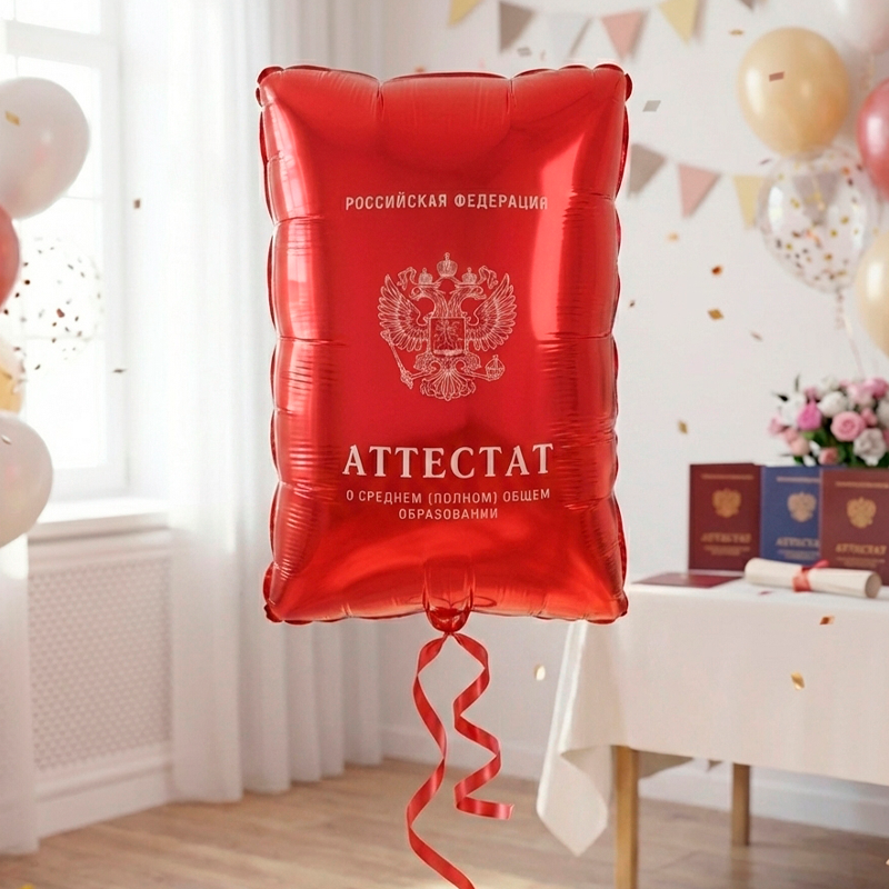 Фольгированный шар в форме аттестата — это уникальный и креативный элемент декора, который идеально подойдет для тематических мероприятий. Шар двусторонний, лицевая сторона имитирует обложку аттестата, на задней стороне изображены молодёжные наклейки, выполненные в 3D эффекте. Для того, чтобы шар летал, рекомендуется надувать его гелием. Имеет встроенный клапан - что упрощает надувание. Выполнен из качественных материалов (полимерная фольгированная пленка). Поставляется в красочной упаковке с цветным изображением шара, благодаря чему можно выставлять товар в сдутом виде. Размер шара в ненадутом виде 41*53 см, в надутом виде 30*48 см.