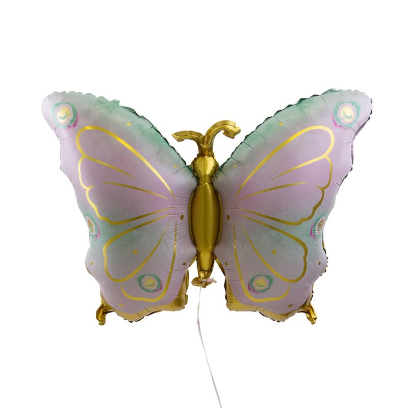 Бабочка нежная с золотом в упаковке, фольгированный шар