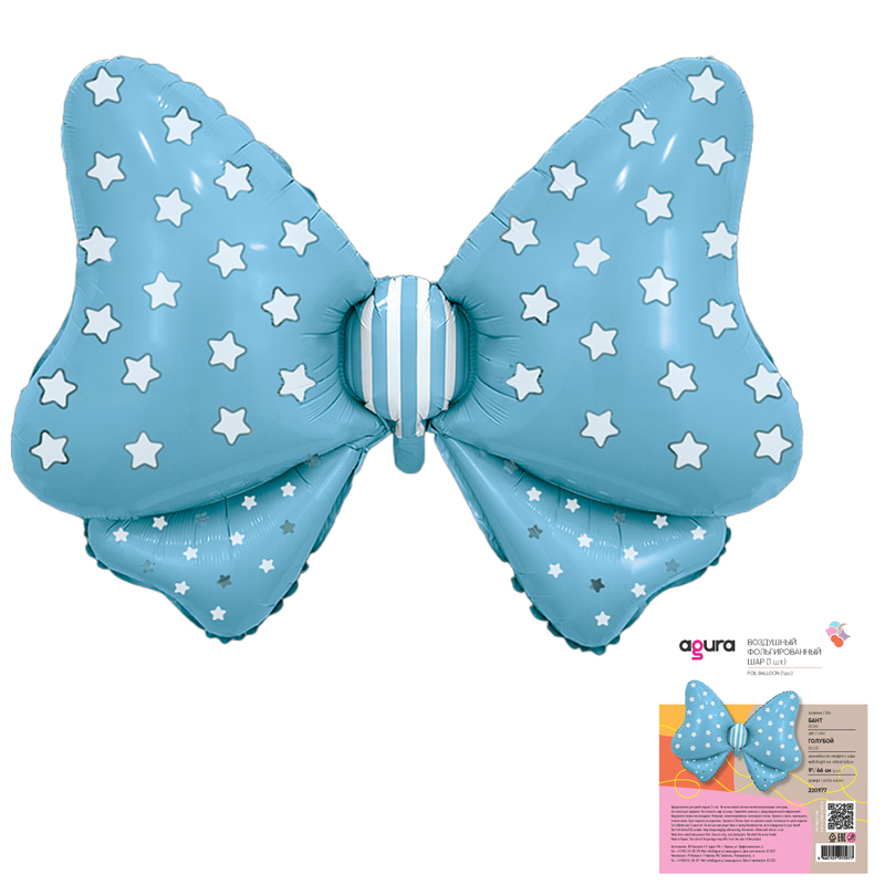 Фольгированный воздушный шар Бант голубой в упаковке - прекрасно подходит для оформления детских праздников, а также может использоваться в качестве самостоятельного подарка или в составе фонтана из шаров. Имеет встроенный клапан, который позволяет гелию оставаться внутри шара длительное время.