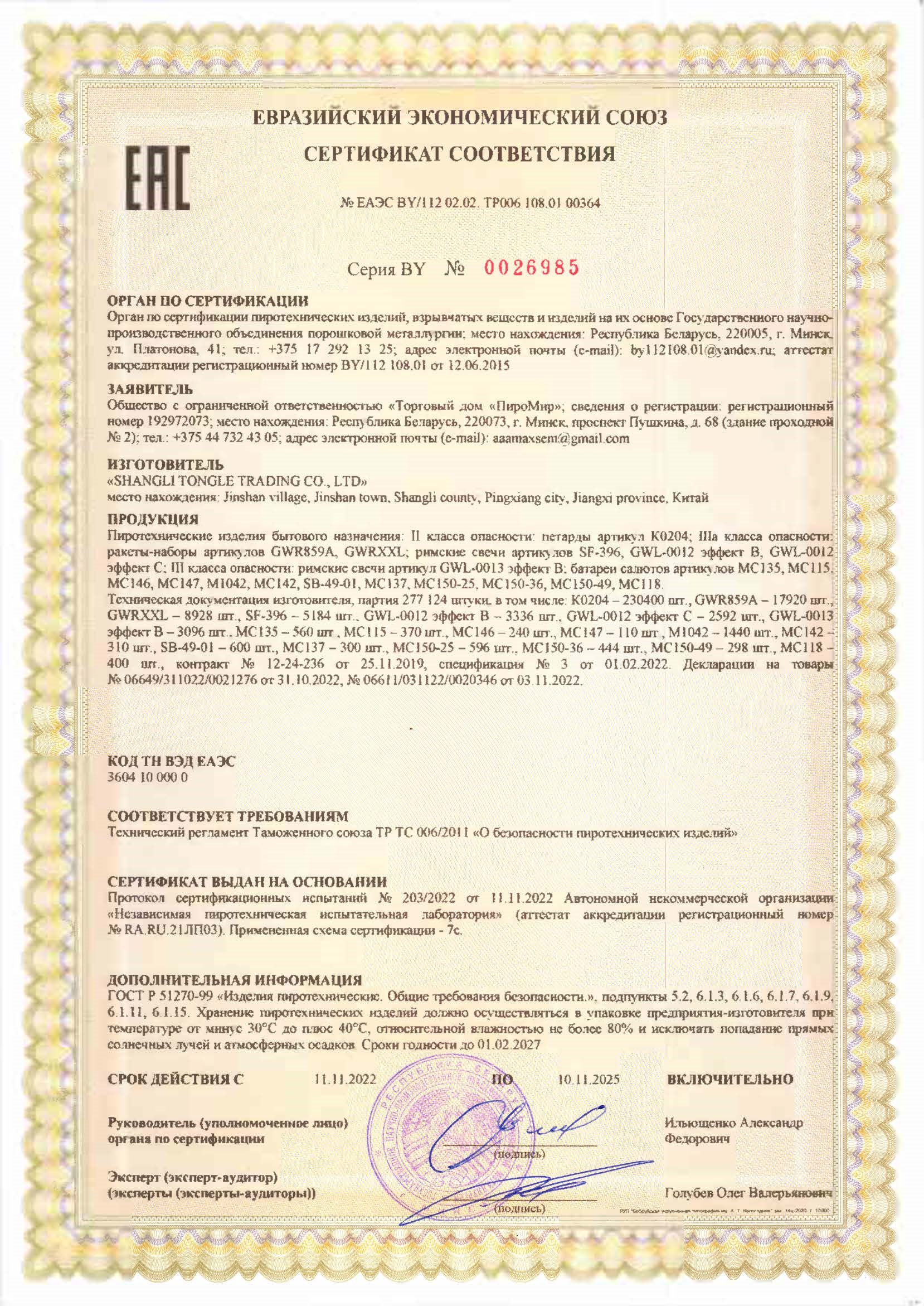 Описание батареи салютов "Феерия"