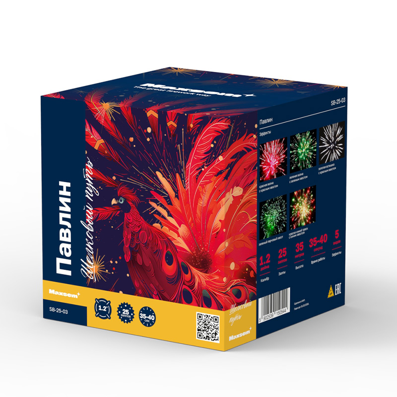Батарея салютов "Павлин" 1,2" 25 выстр., 5 эффектов, 40 сек.
