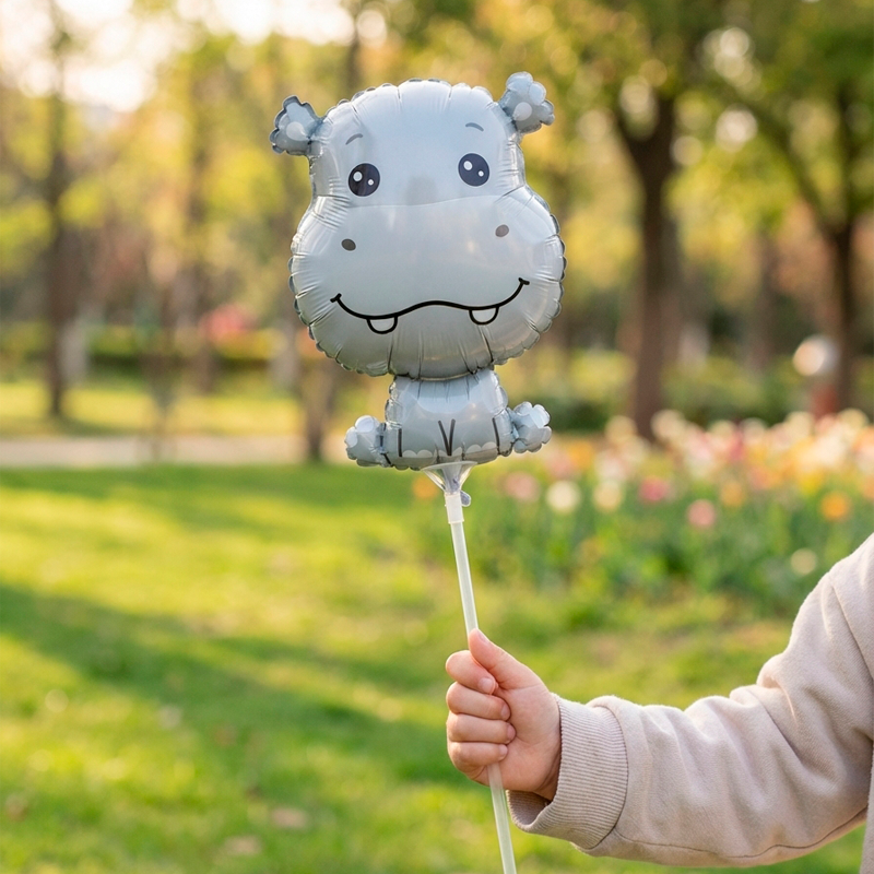 Фольгированный воздушный шар Бегемотик мини будет прекрасным самостоятельным подарком, а также дополнит тематическую фотозону или крафт букет.