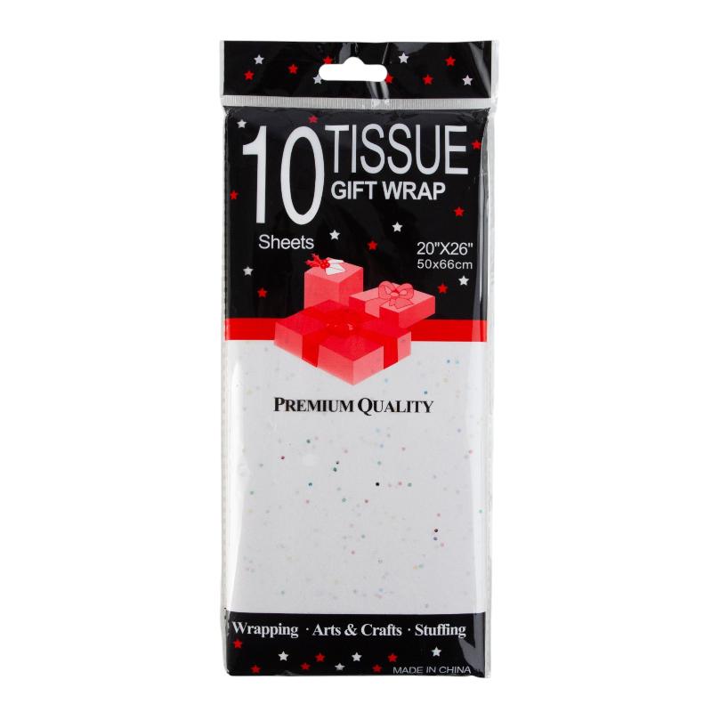 Бумага упаковочная тишью Белая со звездами / листы