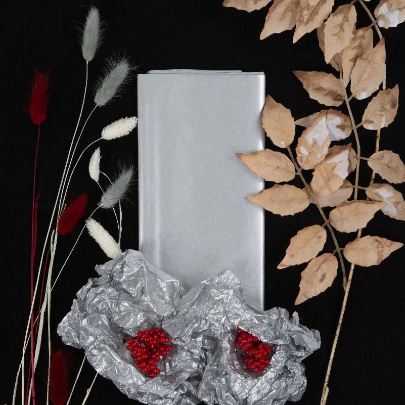 Серебристая премиум- бумага тишью (tissue paper) или, как ее еще называют, папиросная обёрточная бумага - это тонкая, нежная и привлекательная декоративная бумага разных оттенков.