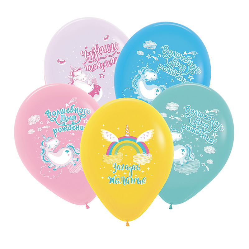 ДР Радужный единорог, ассорти пастель, латексный шар