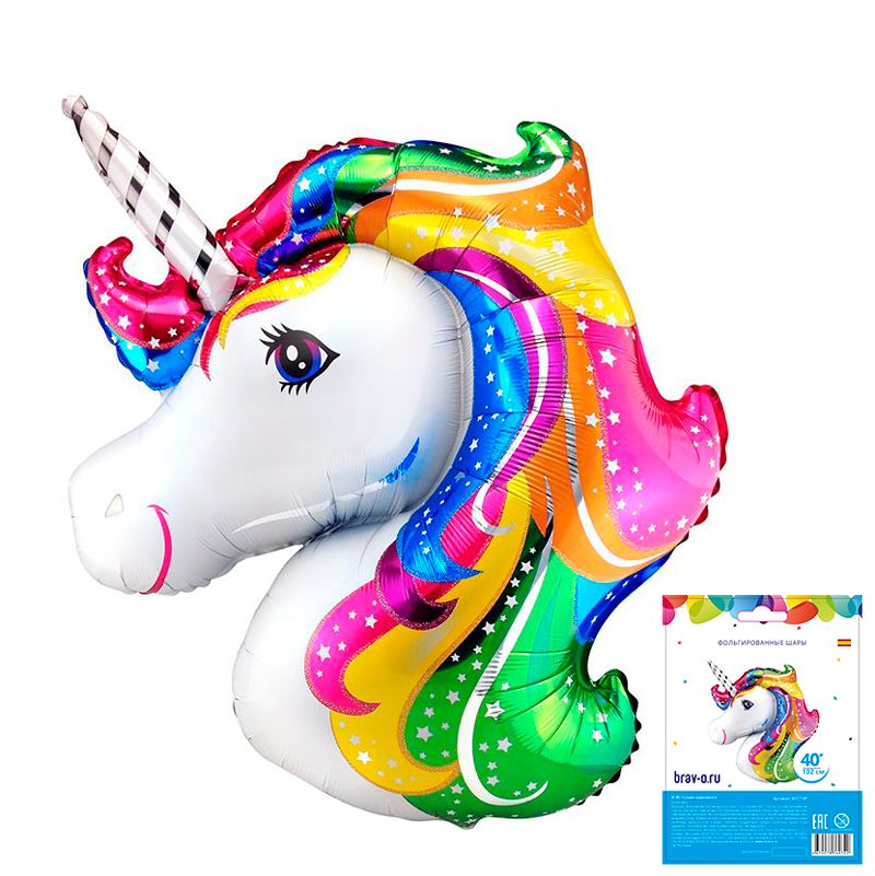 Единорог голова в упаковке, фольгированный шар