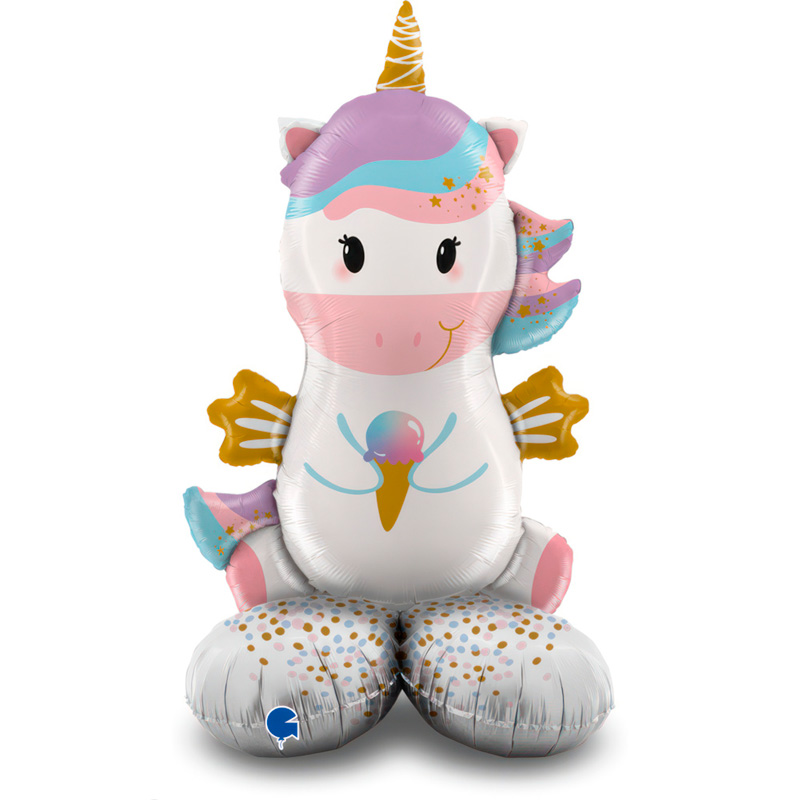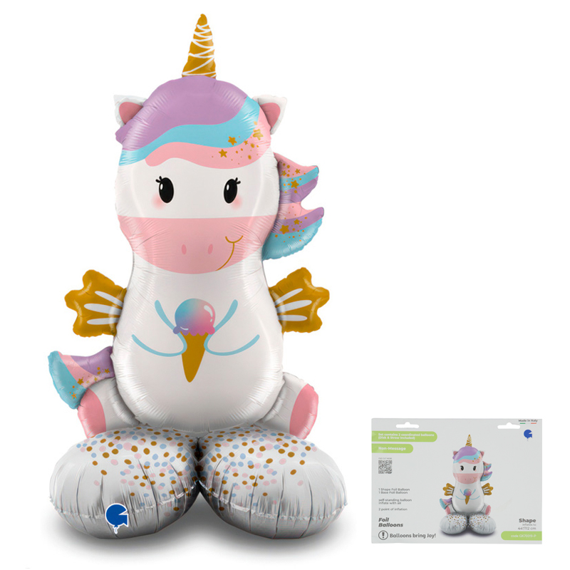 Единорог на подставке в упаковке, фольгированный шар