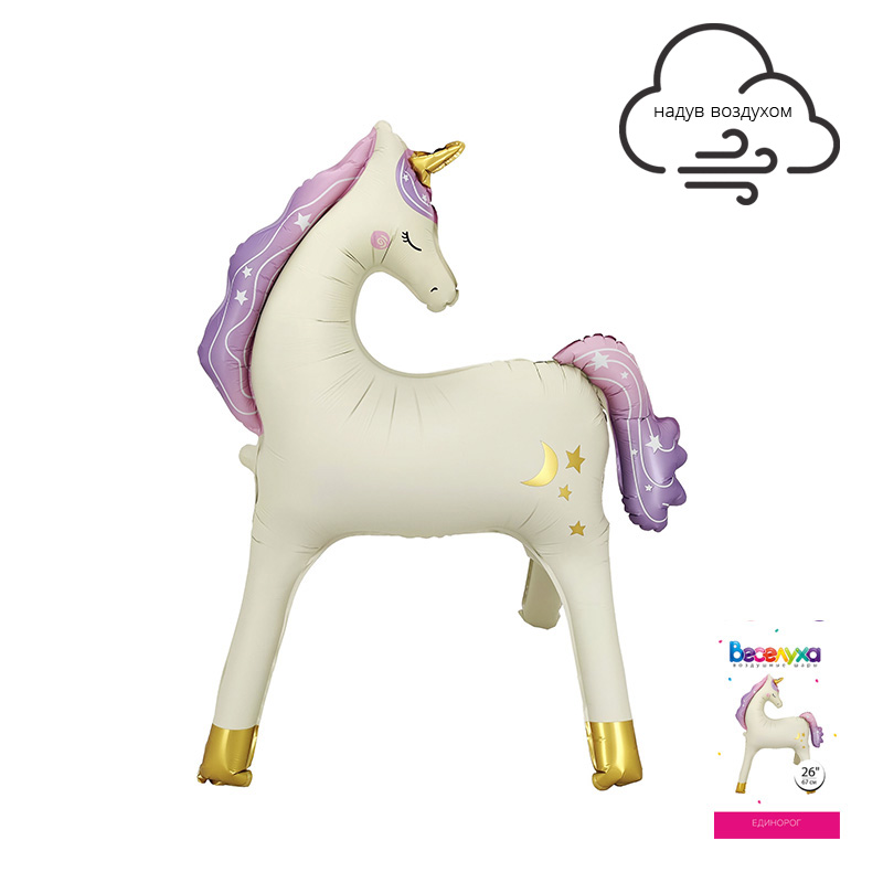 Единорог напольная фигура в упаковке, фольгированный шар