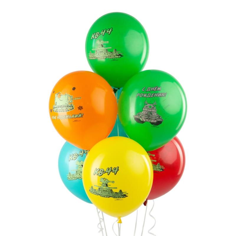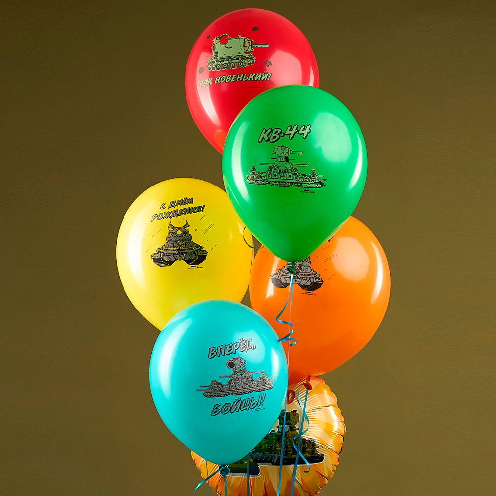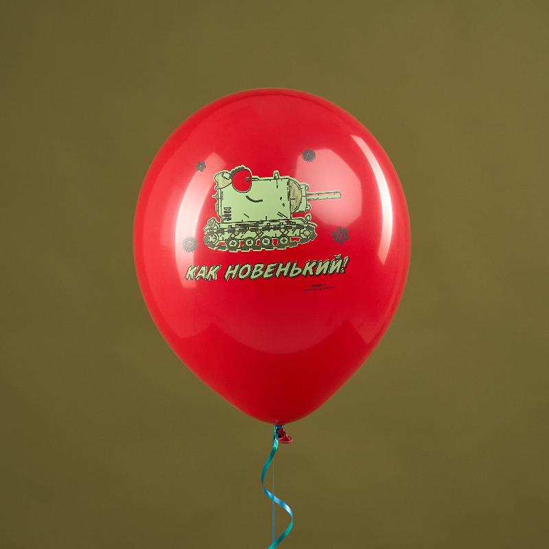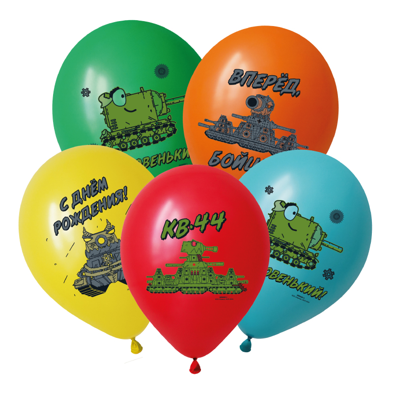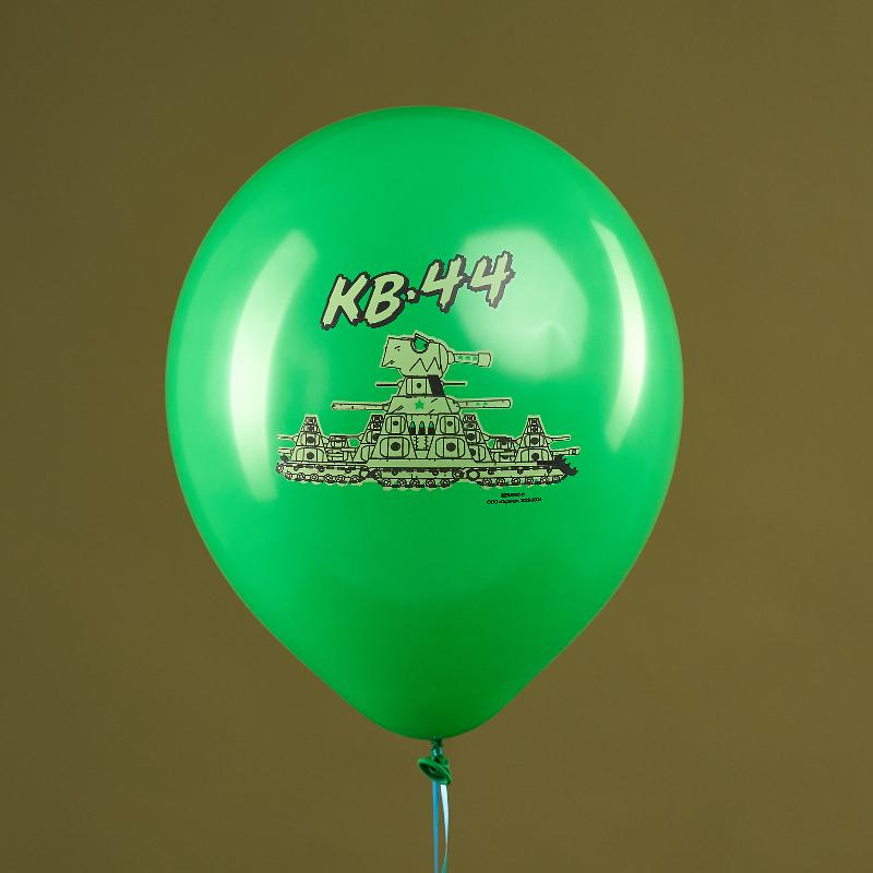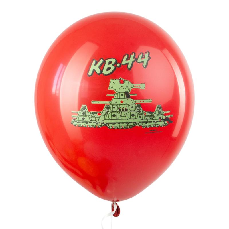 Надписи на воздушных шарах: "КВ 44", "С днем рождения ", "Вперед, бойцы", "Как новенький".