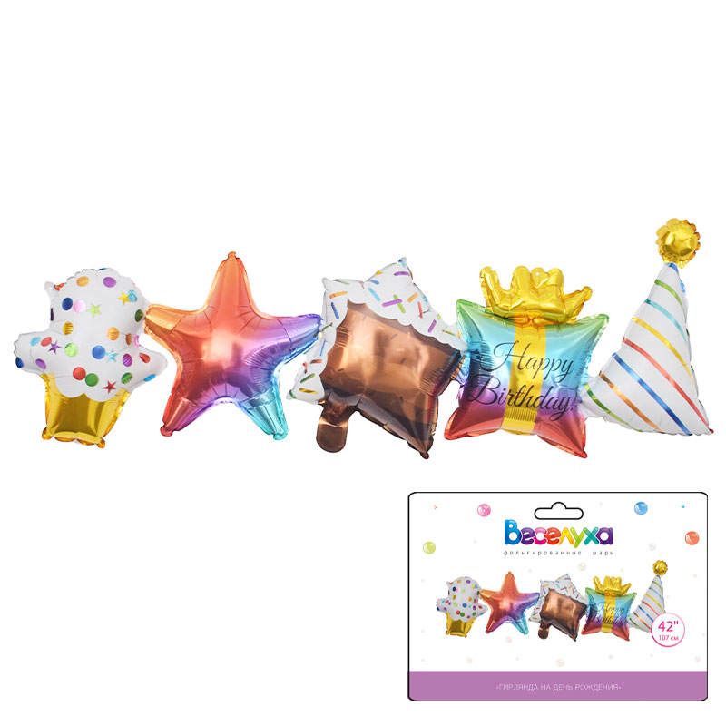 Гирлянда на День Рождения в упаковке, фольгированный шар