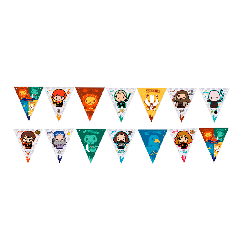 Дизайн "Гарри Поттер" Чиби флажки идеально украсит любое детское мероприятие: день рождения, выезд детей на природу, оформление столов на квестах и других анимационных мероприятиях.