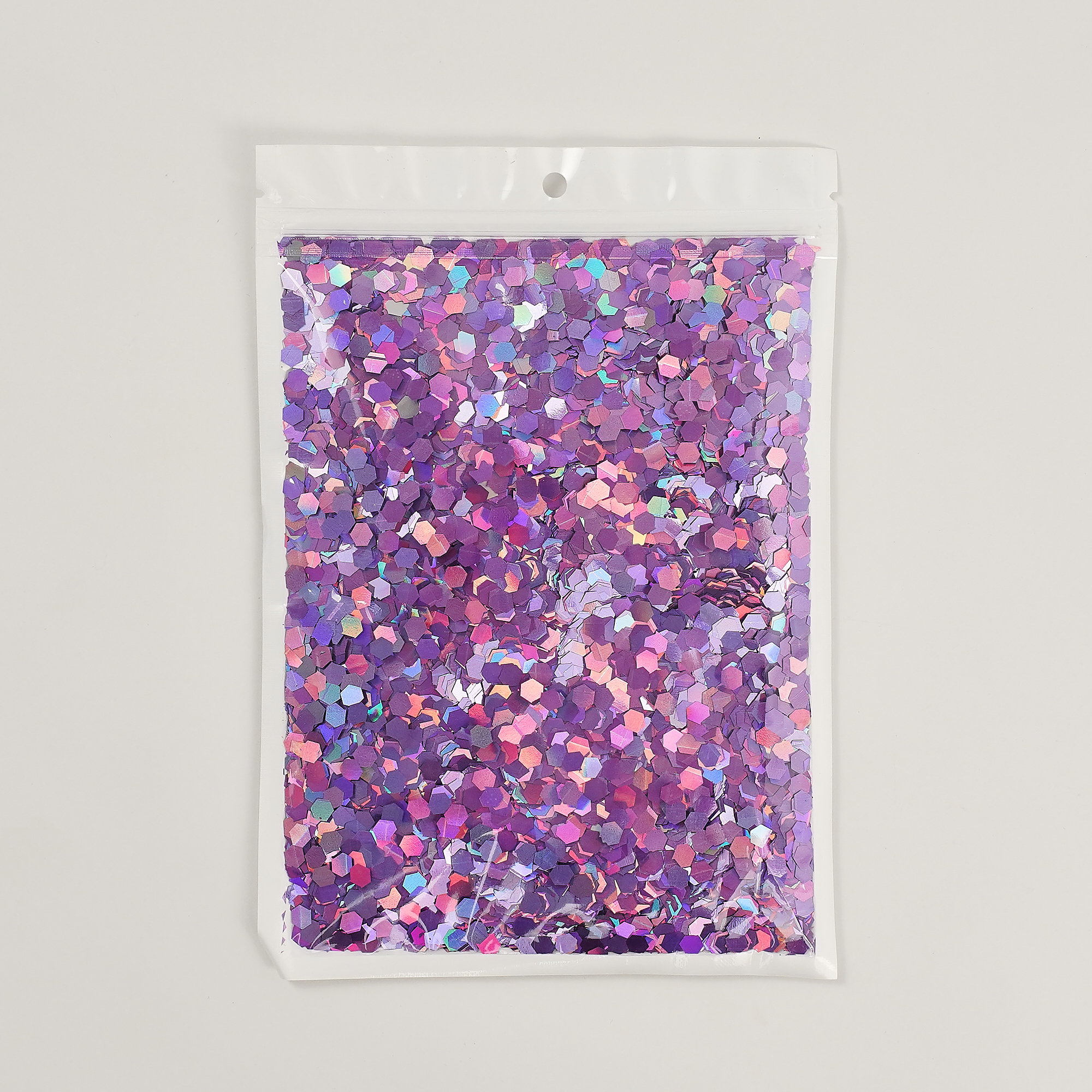 Упаковка глиттера надежно запаяна, что позволяет избегать его преждевременного рассыпания при транспортировке. Применение глиттера широко распространено в различных областях: аэродизайне, скрапбукинге, декорировании упаковки и т.д. Форма глиттера "Блестки лавандовый" – шестигранник. Оптимальный вес глиттера для наполнения гелиевого шара 12" - от 3 до 5 грамм.