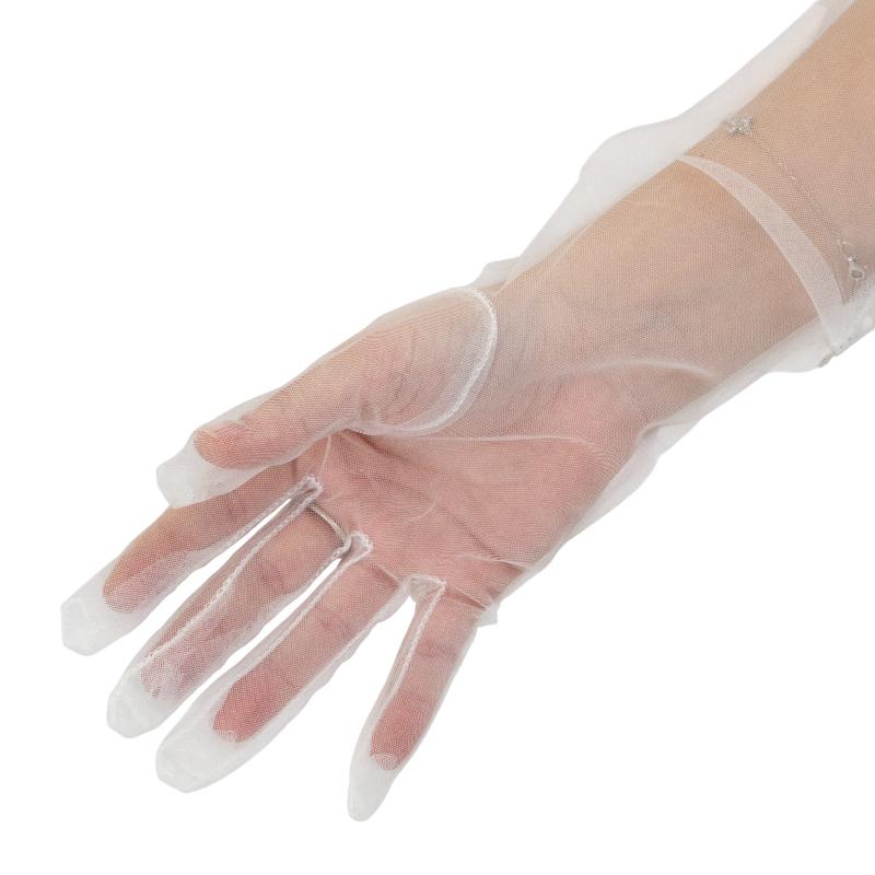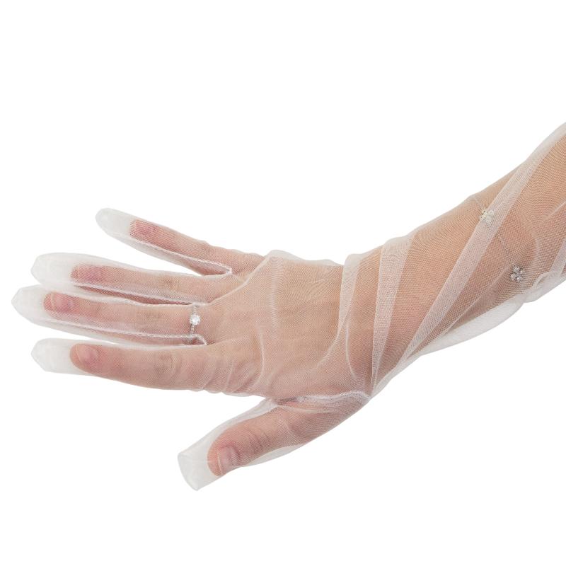 Блеск и стиль: Белый цвет и деликатное украшение придают перчаткам особый блеск, который выделит вас среди толпы.