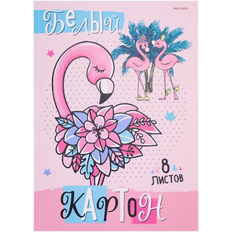 Картон белый "Нежность фламинго" мелованный, 8 листов