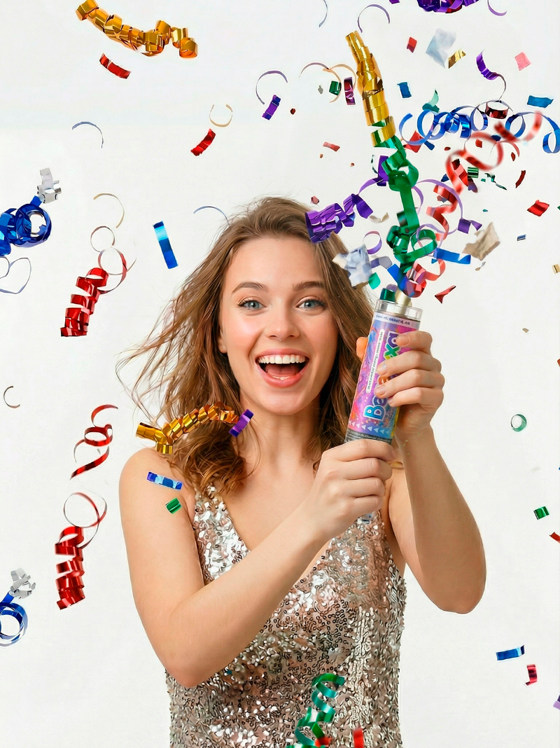 Перед использованием встряхните хлопушку. Внимательно читайте инструкцию на этикетке.