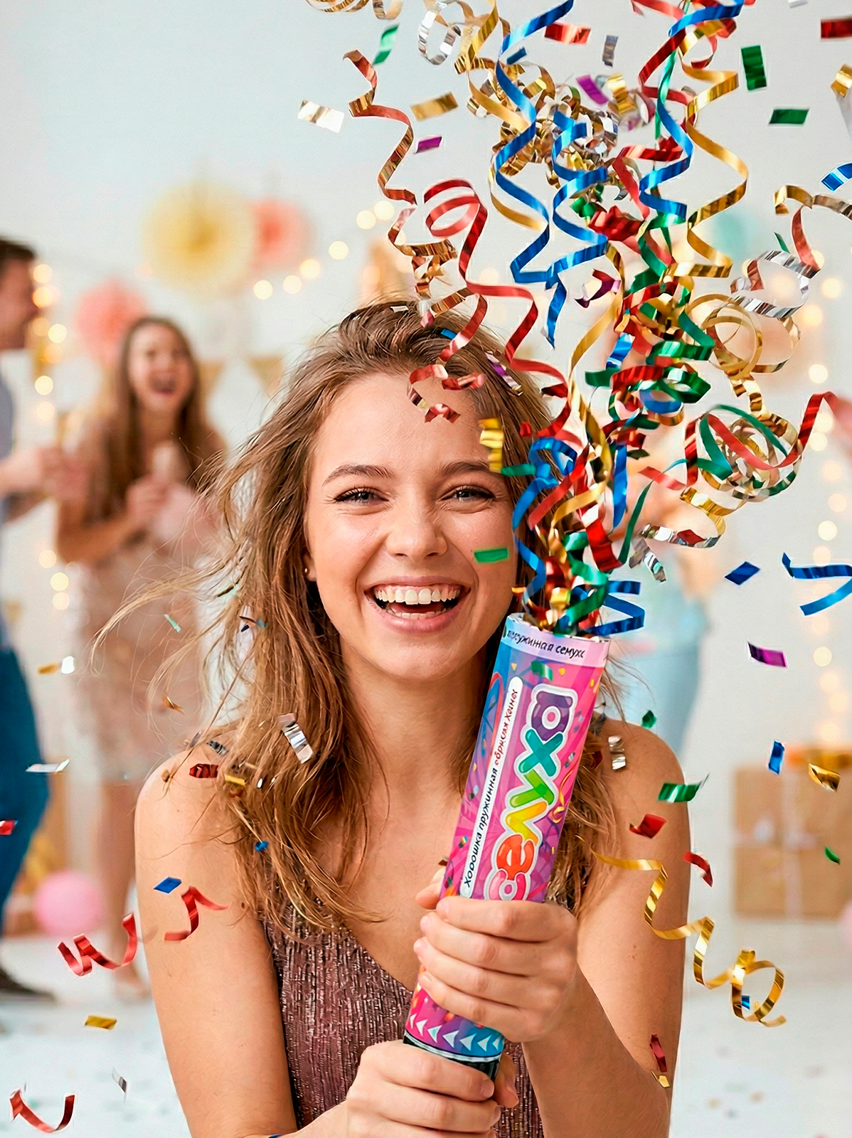 Перед использованием встряхните хлопушку. Внимательно читайте инструкцию на этикетке.