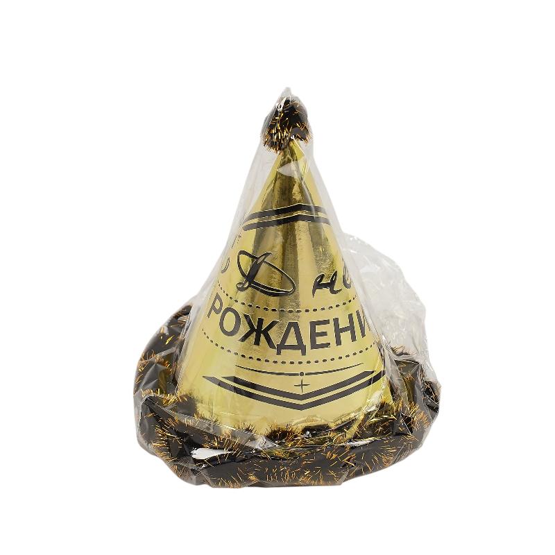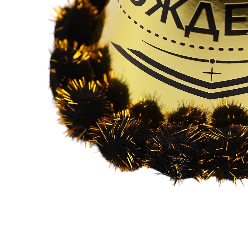 Колпак с помпонами "С Днем Рождения!" Золото