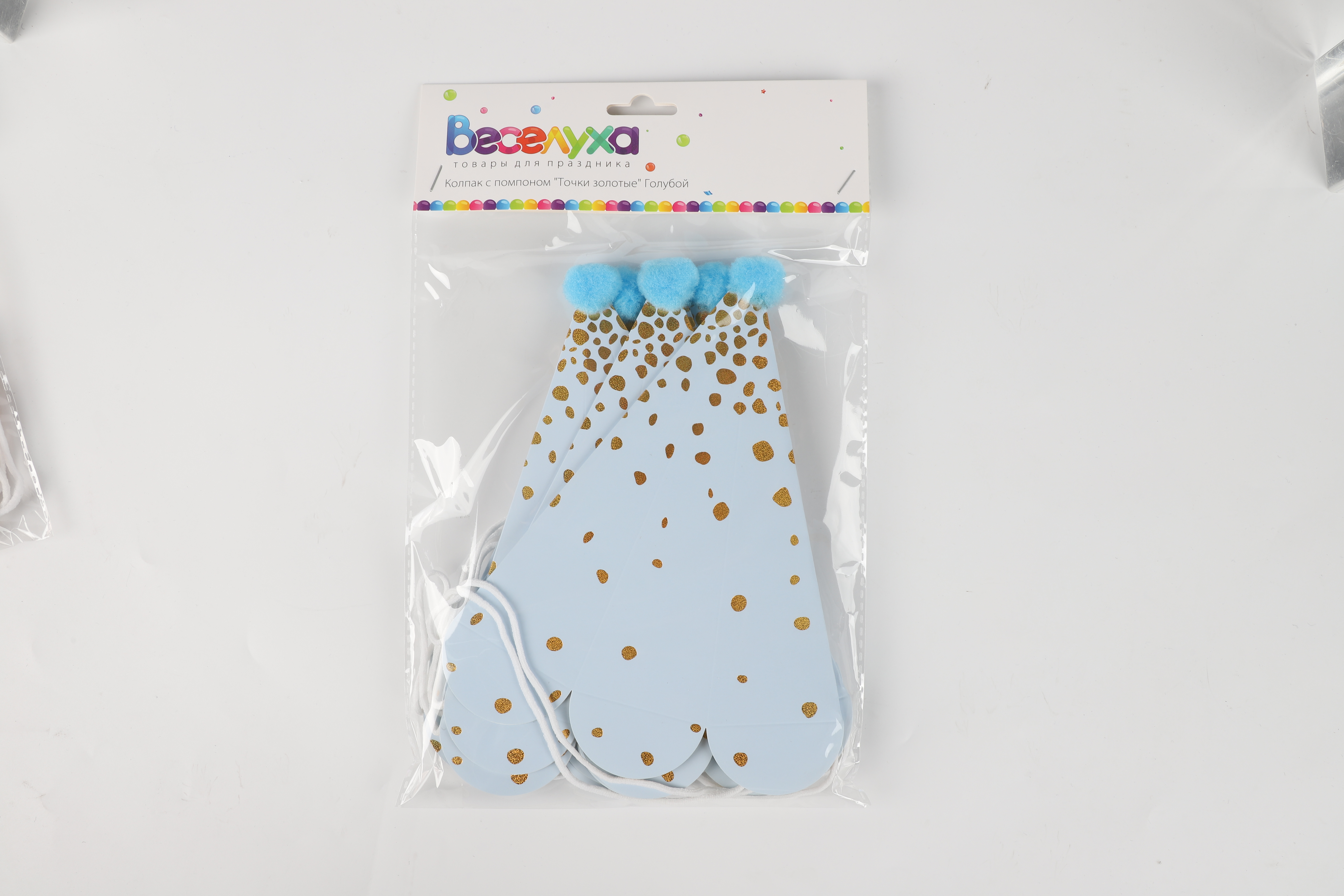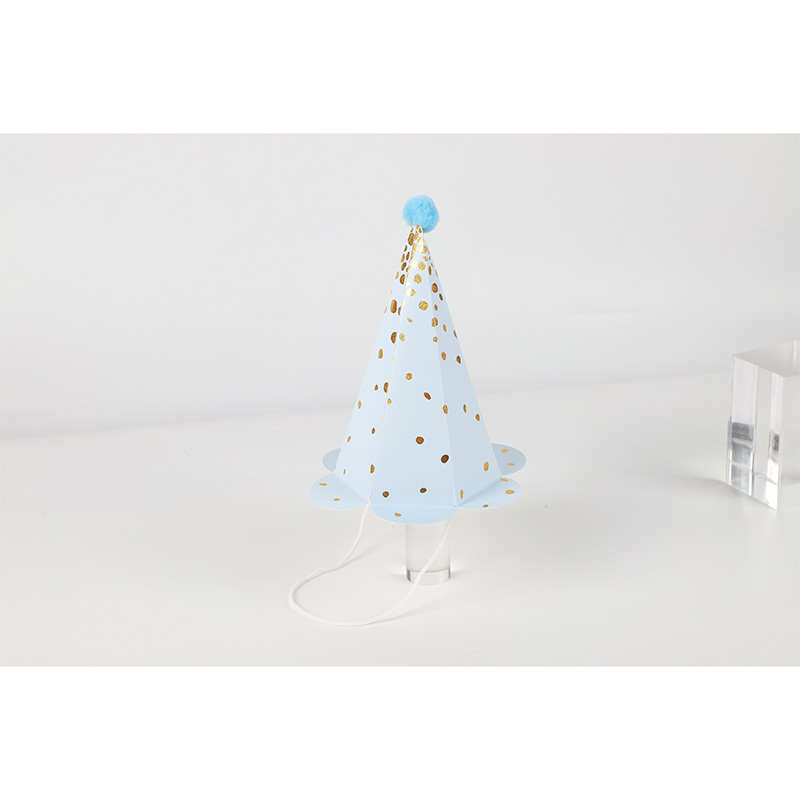 Яркий Колпак с помпоном "Точки золотые" Голубой — это незаменимый атрибут дня рождения, а декор в виде помпона сделает праздничные снимки яркими и неповторимыми. Колпак бумажный подойдет как для именинника, так и для гостей вечеринки.