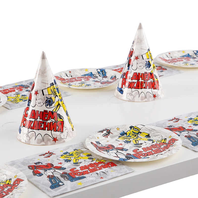 Праздник станет ярче, если дополнить его различными атрибутами. Колпачки "С Днем Рождения" Трансформеры идеально подойдут для неожиданного поздравления, а фотосессия с бумажными колпаками непременно станет эффектной!