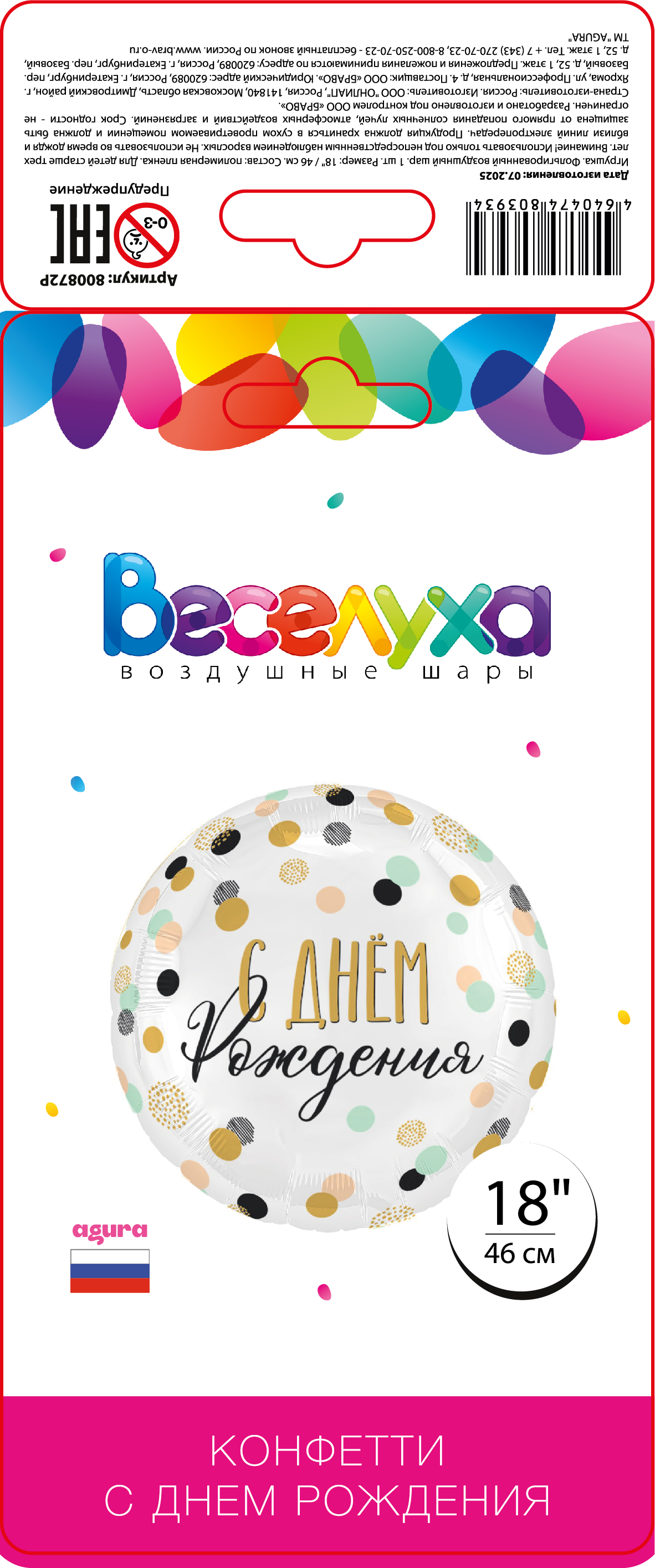 Конфетти "С днем рождения" в упаковке, фольгированный шар