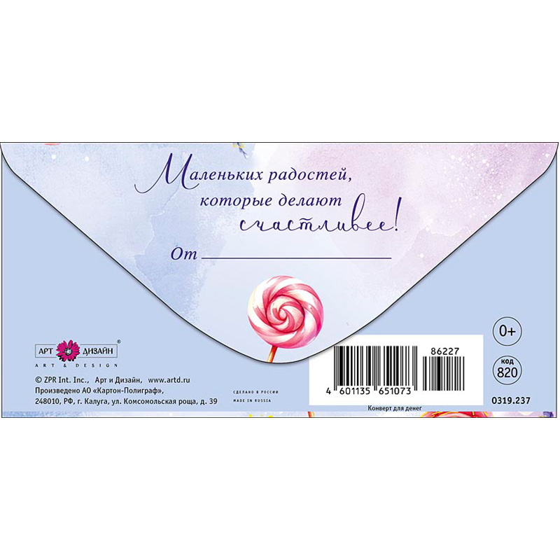 Конверт для денег С Днем Рождения, кофе и сладости