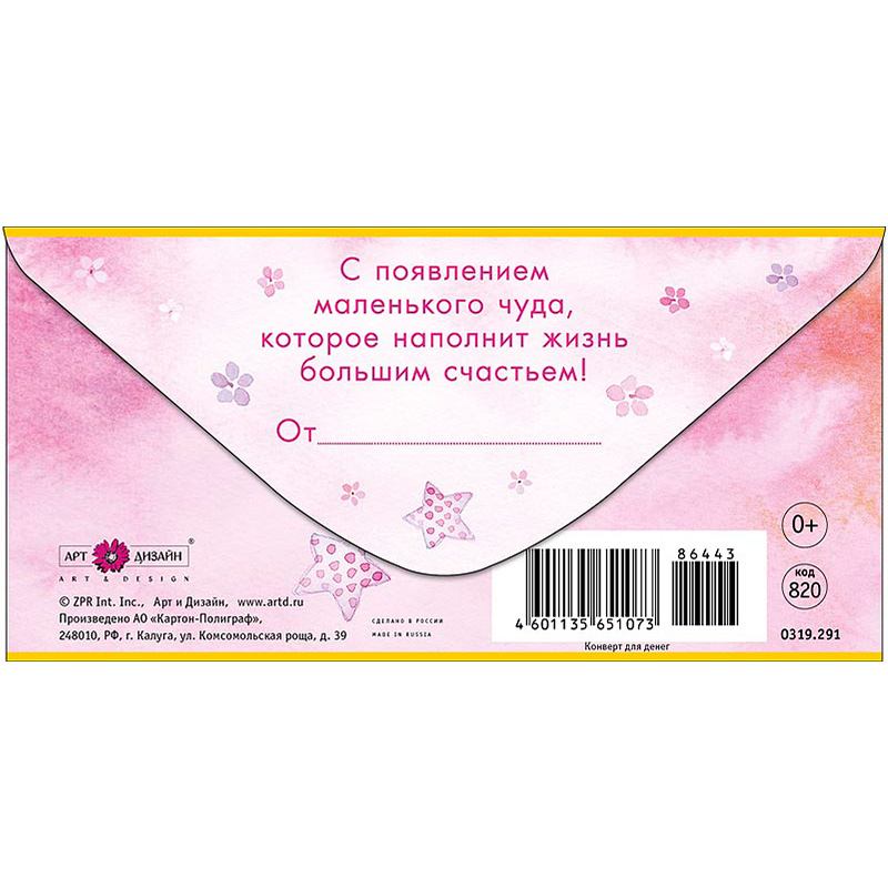 Трогательный конверт для первого в жизни денежного подарка новорожденному. Красивый способ поздравить счастливых родителей с появлением долгожданной дочки.