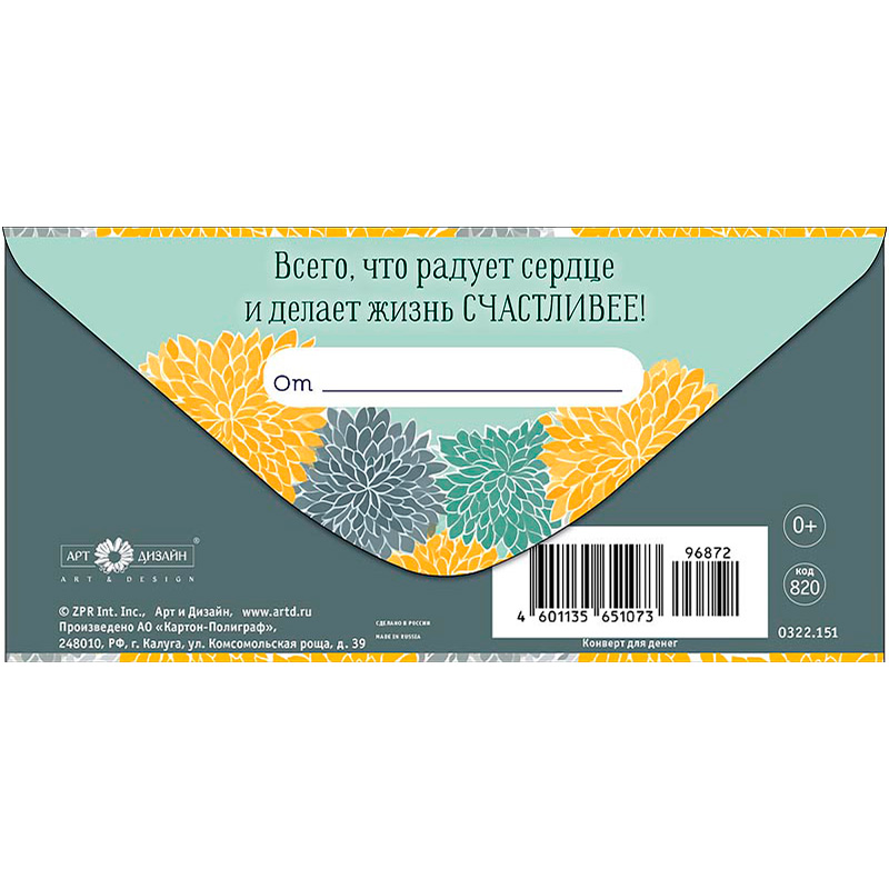 Конверт для денег с цветочным принтом "Поздравляем"