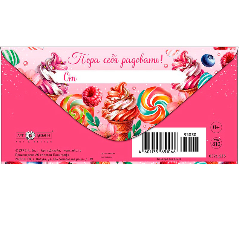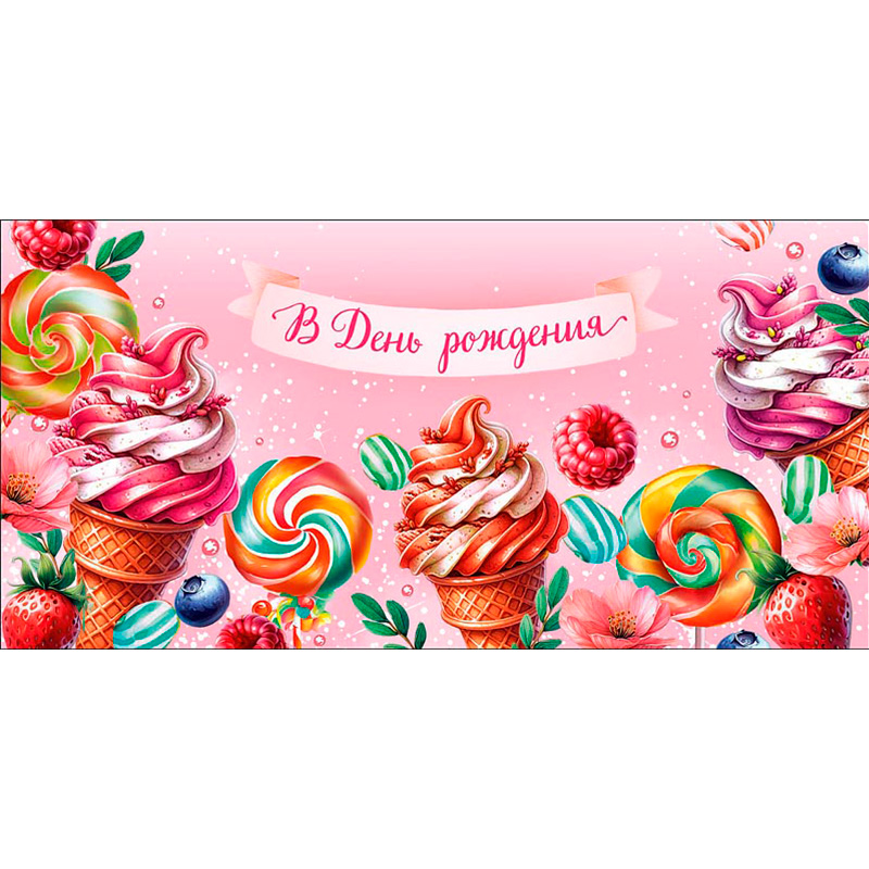 Конверт для денег В День Рождения. Сладости – стильный способ подарить радость! Идеально для тех, кто хочет сделать свой подарок особенным и запоминающимся.