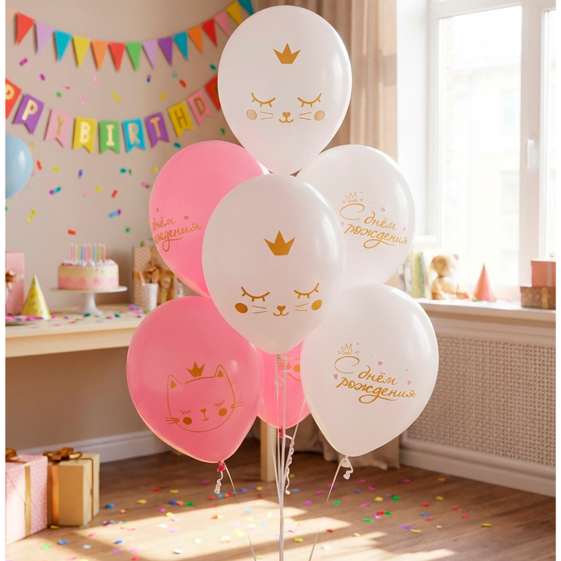 Котенок принцесса, Ассорти Пастель, латексный шар