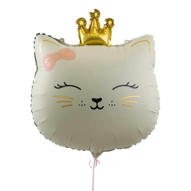 Котенок принцесса с короной, пудровый в упаковке, фольгированный шар