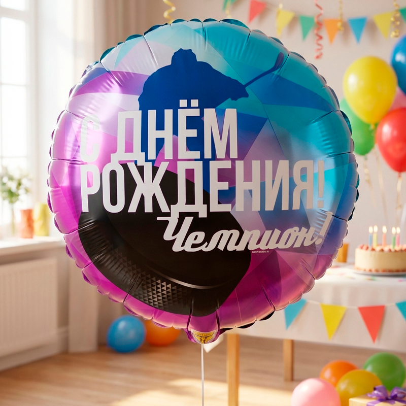 Круг "С днем рождения! Чемпион!" в упаковке, фольгированный шар