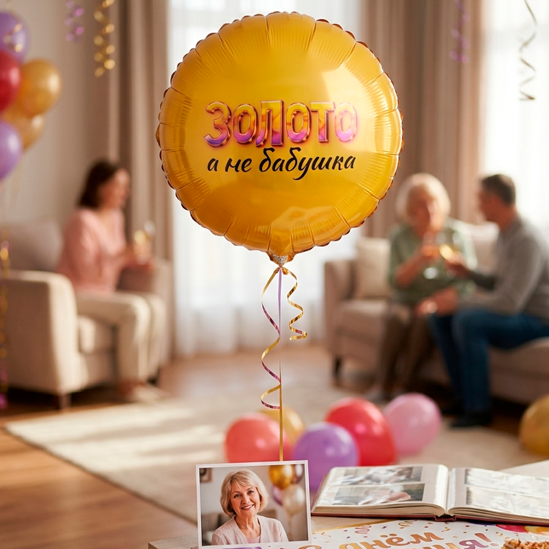 Круг "Золото, а не бабушка" в упаковке, фольгированный шар
