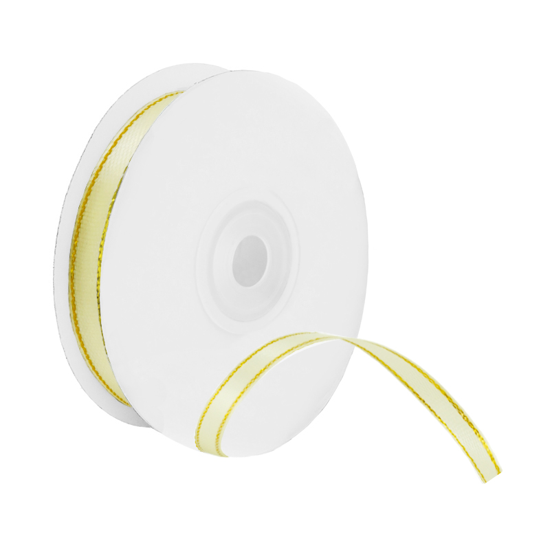 Атласная лента с золотой нитью получила широкое распространение благодаря гладкой блестящей поверхности, прочности, разнообразию цветов и размеров. Работать с атласом легко и приятно, а золотые полоски по краям придают особенный вид ленте.
