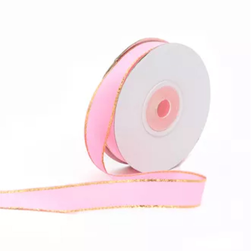 Лента Атлас с золотой нитью Розовая пудра