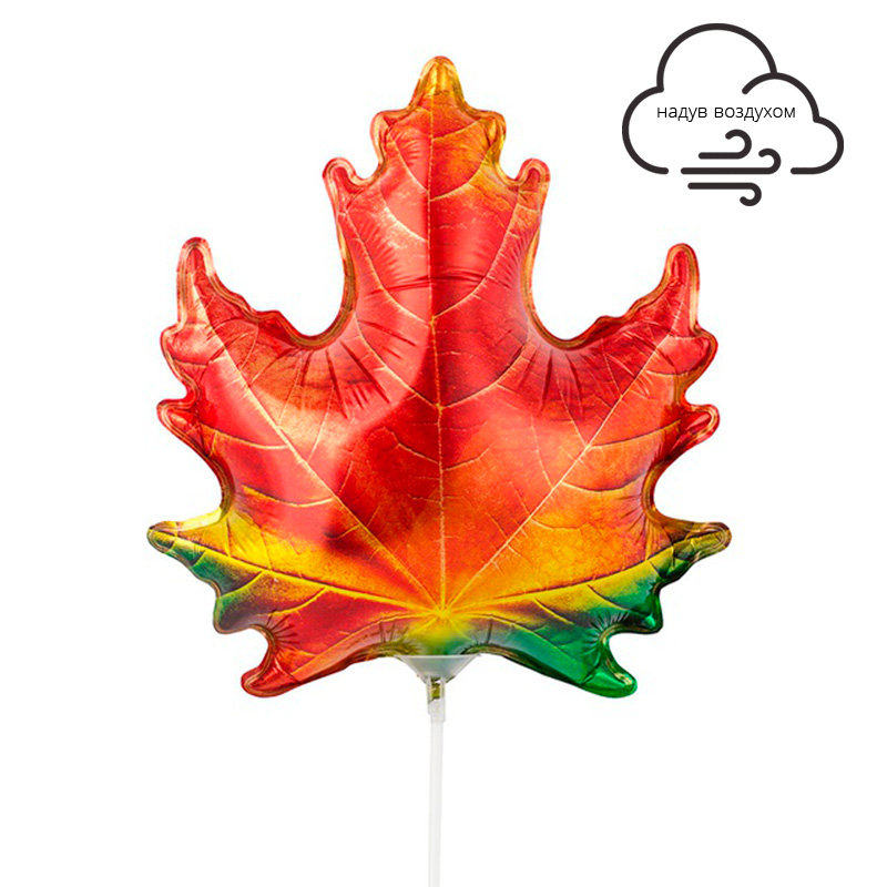 Объемная мини-фигура в форме кленового листочка. Шар снабжен клапаном. Для надува рекомендуется использовать воздух. Кленовый лист можно разместить на палочке с использованием розетки (в комплект не входят). Шар может быть использован в качестве декора, а также как составная часть букета).
