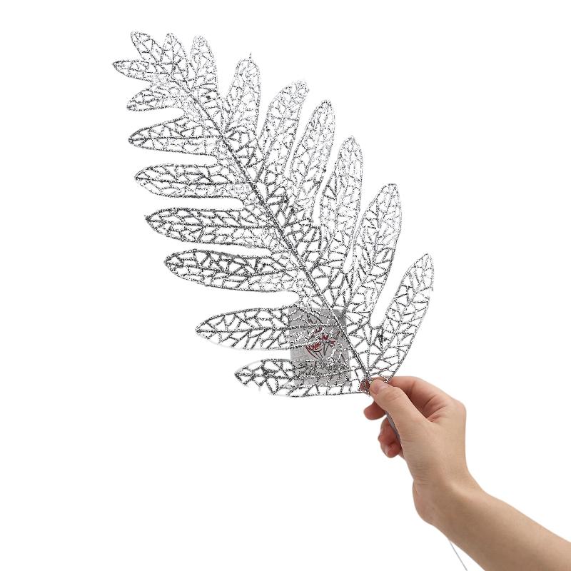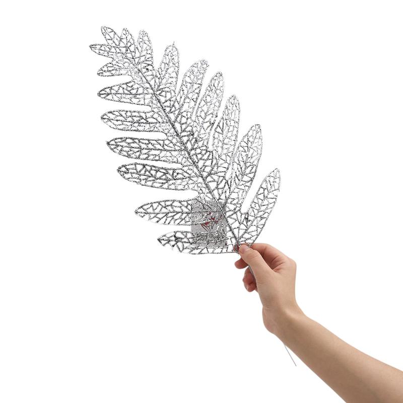 Лист Пальмы глиттерный искусственный "Кружевной" Серебряный