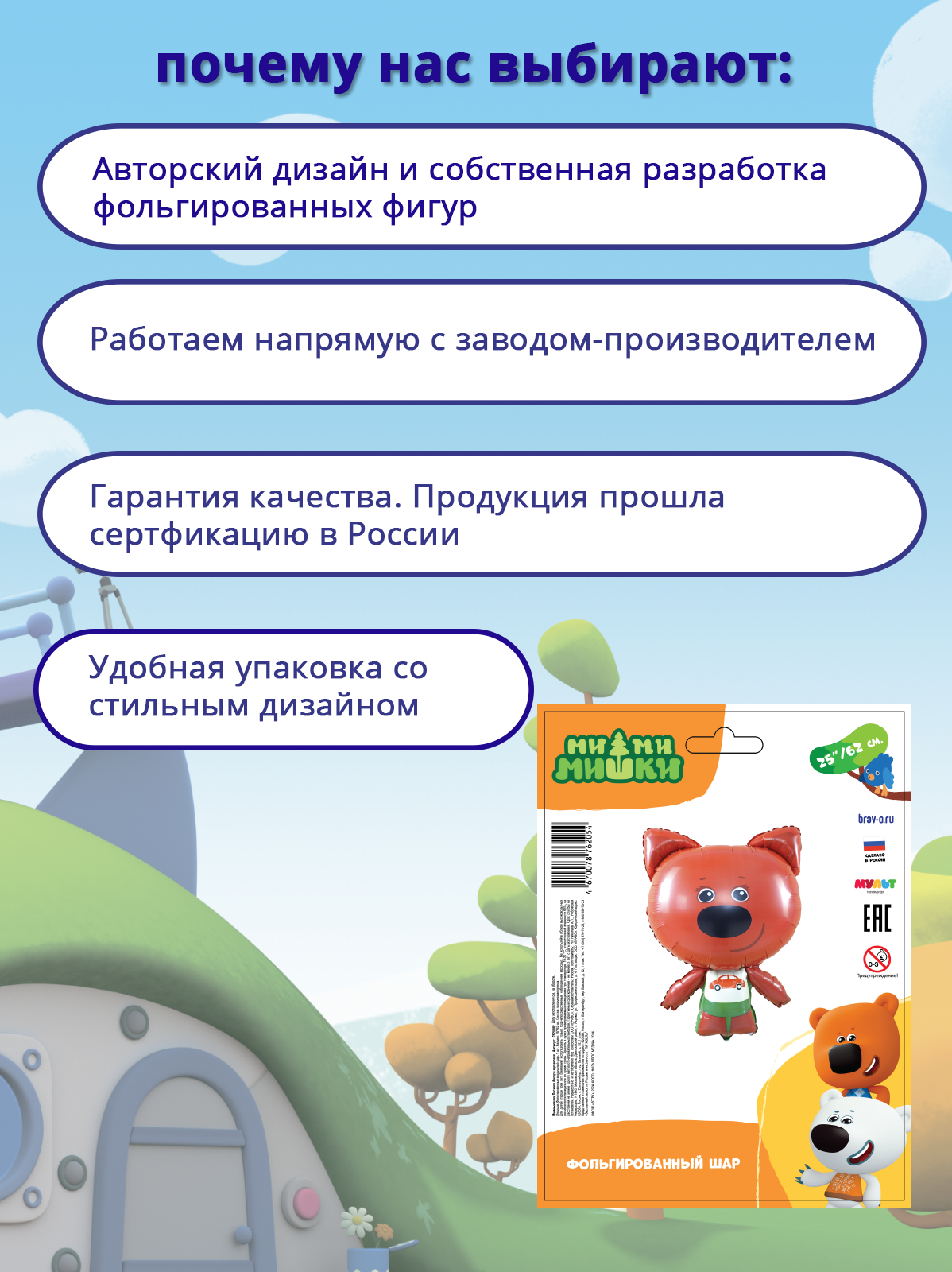 Фольгированный воздушный шар Ми-ми-мишки Лисичка прекрасно подходит для оформления детских праздников или в качестве самостоятельного подарка для ребенка. Эксклюзивная лицензионная разработка "БРАВО".