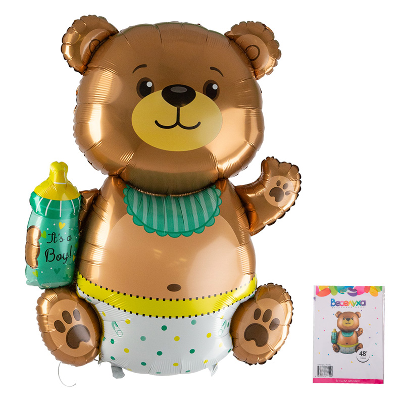 Мишка-малыш в упаковке, фольгированный шар