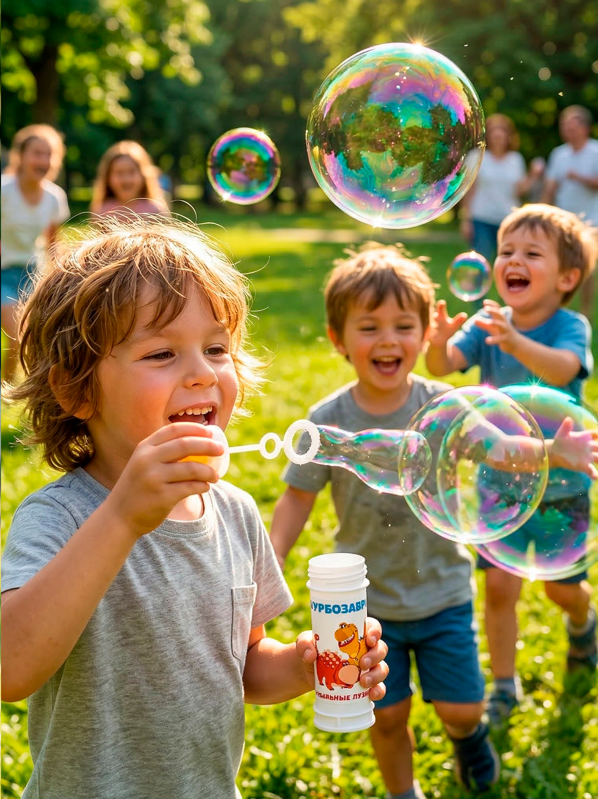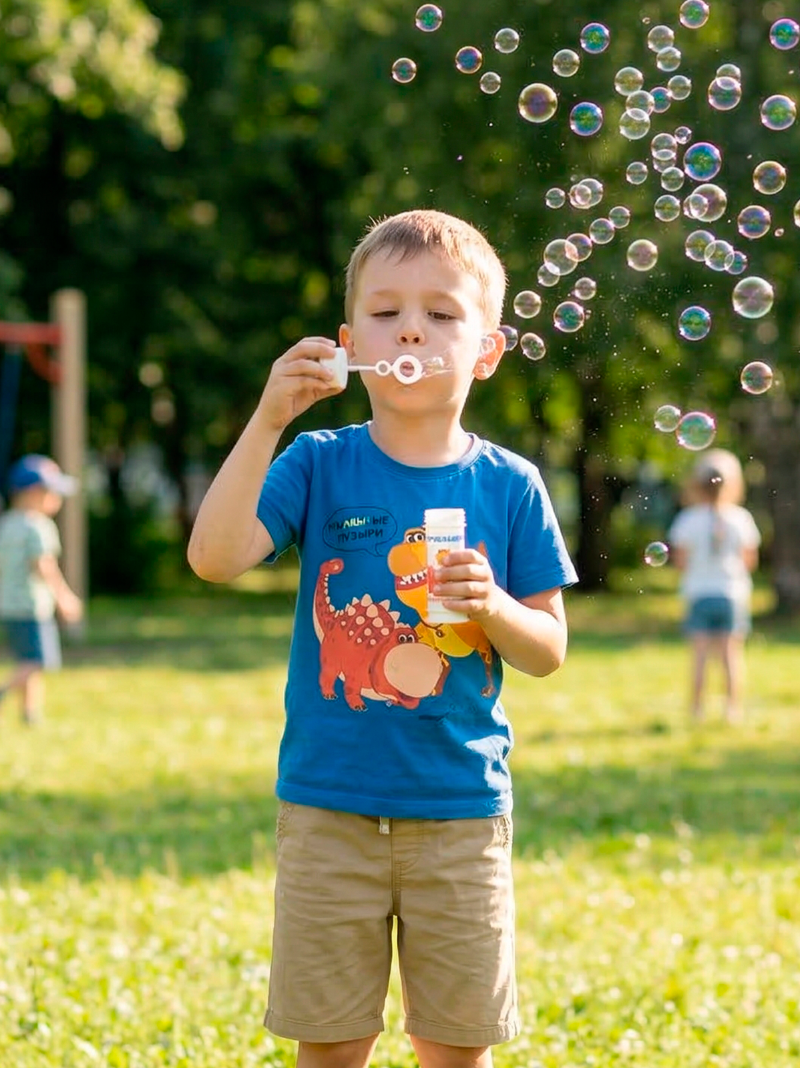 Мыльные пузыри, переливающиеся всеми цветами радуги - любимая забава всех детей. Популярный дизайн одноименного мультфильма "Турбозавры" придутся по нраву как мальчикам, так и девочкам. «Турбозавры» — российский мультсериал, созданный анимационной студией «Карамель и Ко». Первая серия мультсериала была показана 5 ноября 2019 года на телеканале «О!» в России, 25 ноября 2019 года премьера на телеканале «Карусель», 7 и 14 мая 2022 года премьера на телеканалах «Мульт» и «Ani». В сентябре 2022 года студия выпустила анимационный киноальманах «Турбозавры, вперёд!», который набрал рекордные сборы. По сюжету сериала, в незапамятные времена планету населяли динозавры. Когда Земля столкнулась с огромным метеоритом, они ушли в огромные подземные пещеры. Жизнь динозавров под землёй усложнилась, и они стремительно эволюционировали. Например, научились превращаться в различные машины и механизмы. С тех пор они стали называть себя — «Турбозавры». В мультфильме они знали, что на поверхности Земли развивается человеческая цивилизация и старались, чтобы люди о них ничего не узнали. Но однажды любопытные подростки-динозавры выбрались во внешний мир, где и встретились с человеческими детьми. Между ними возникли дружба и взаимопонимание.