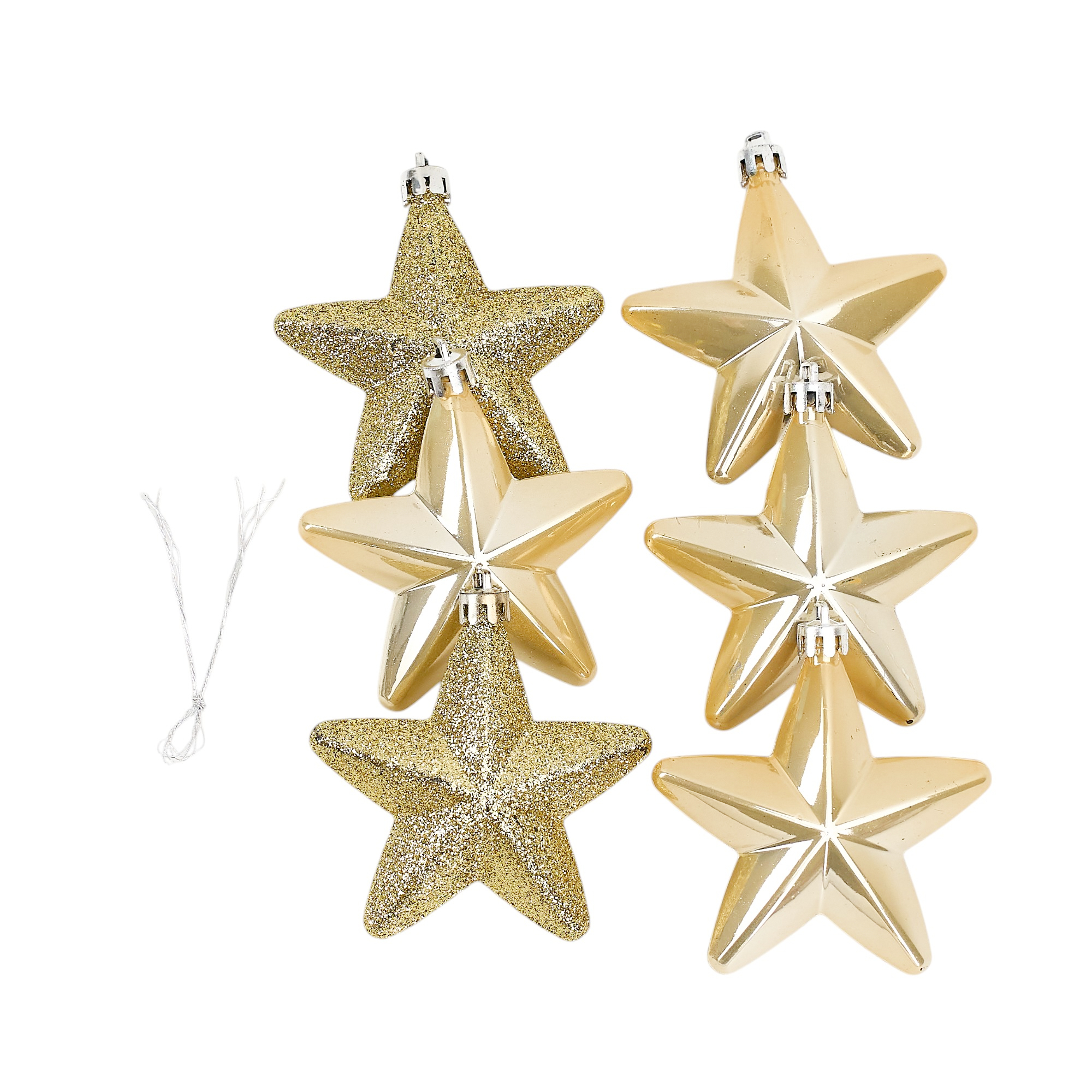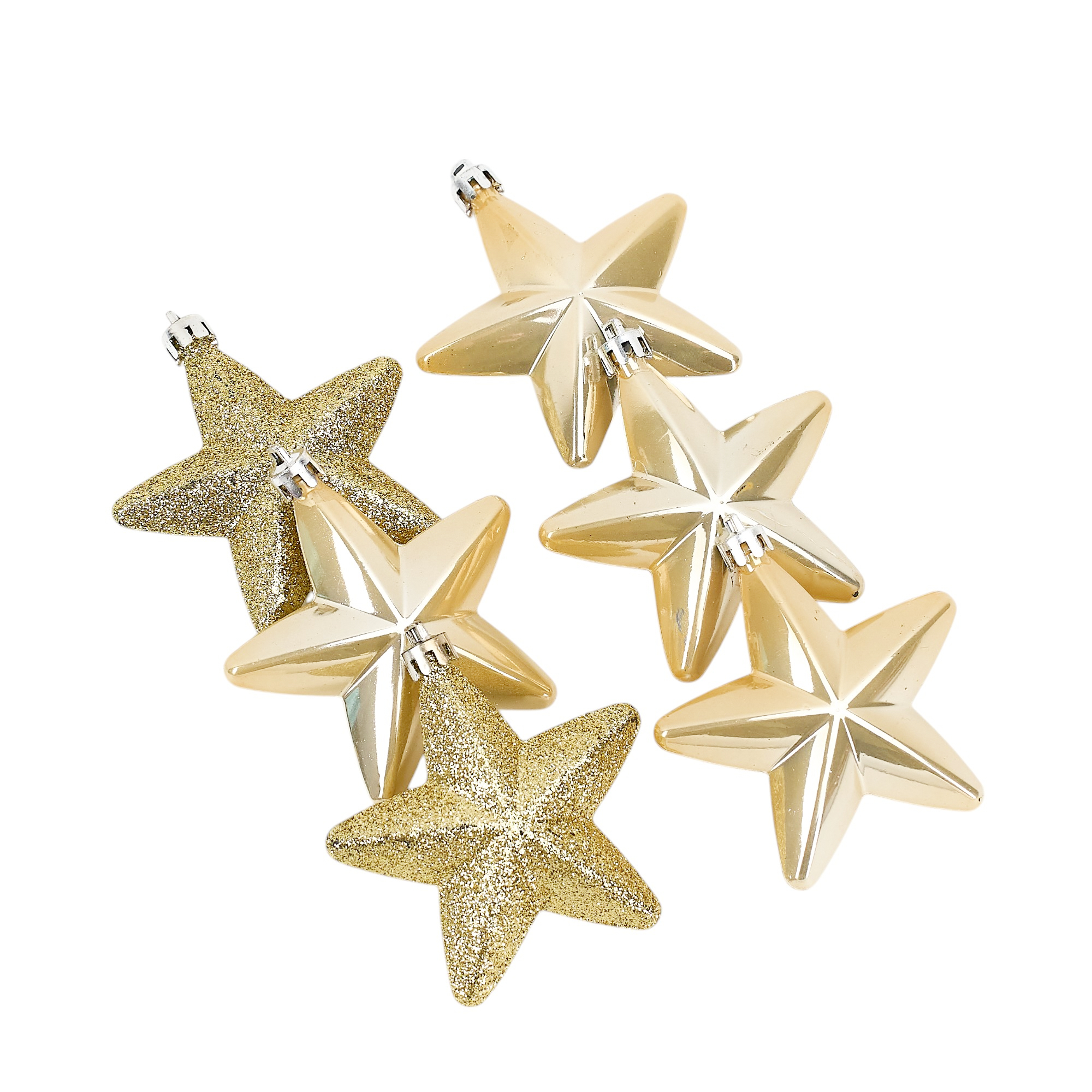 Набор елочных украшений Звездочки золотые будут прекрасно смотреться в новогоднем и свадебном декоре помещений, в различных фотозонах и даже, в букете невесты.