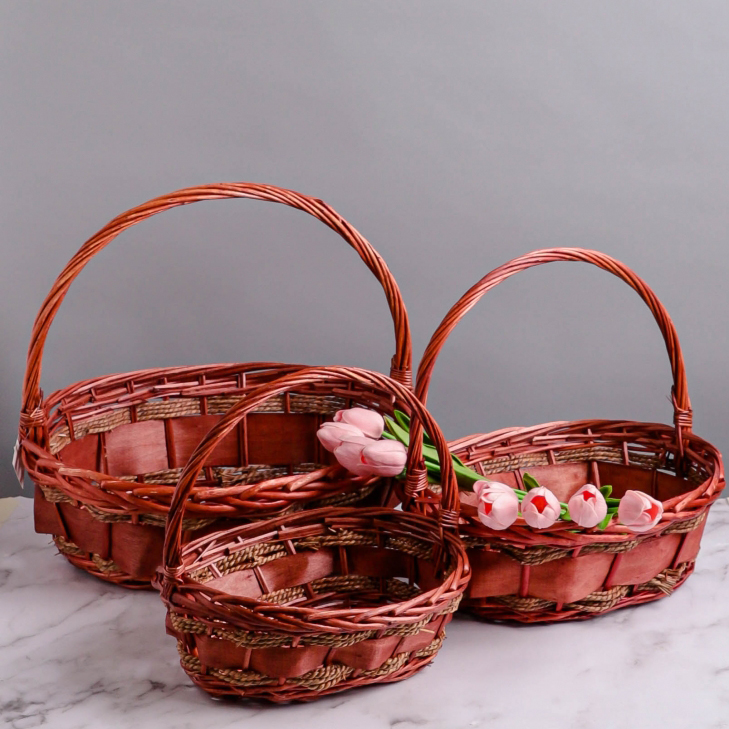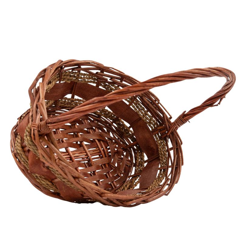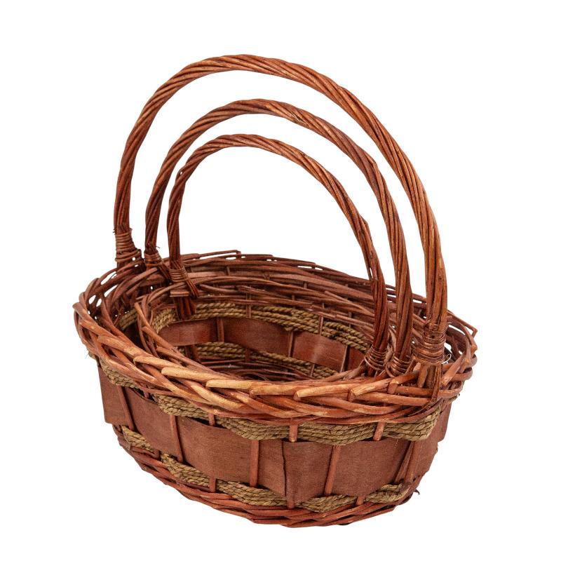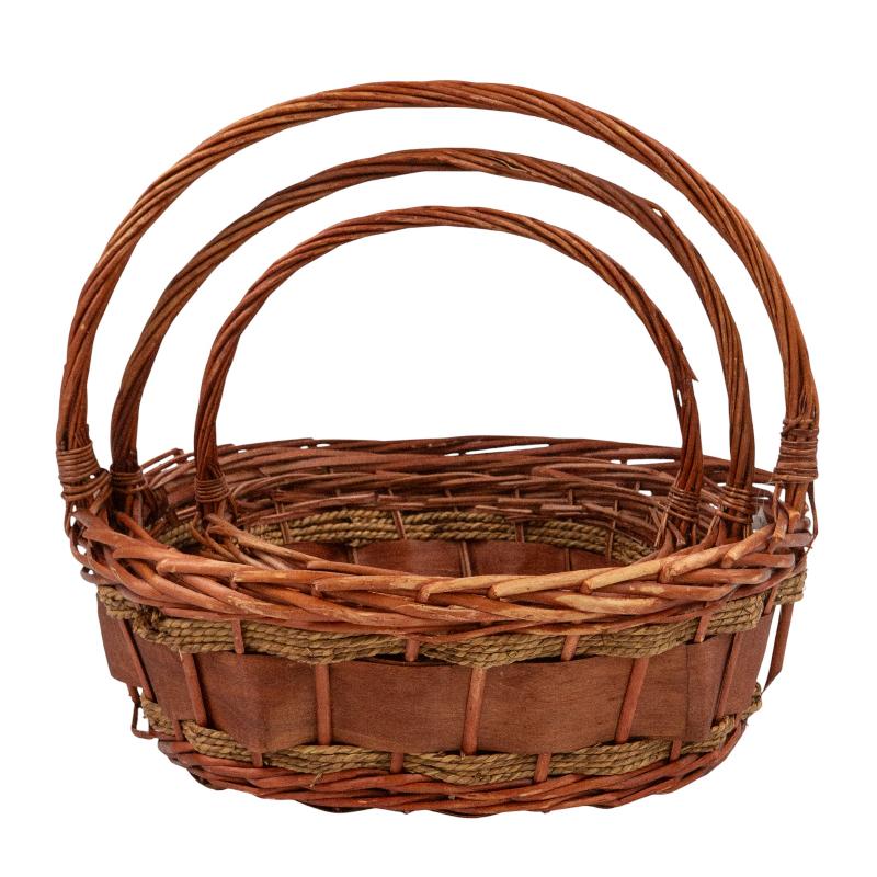 Набор плетеных корзин с ручкой 3 в 1. Ива, коричневая / большая