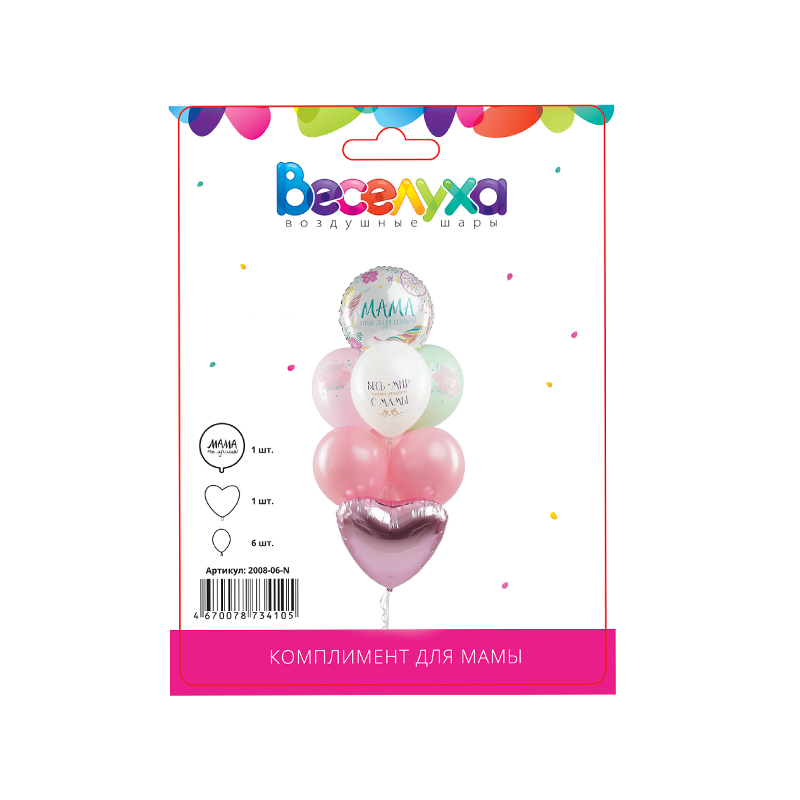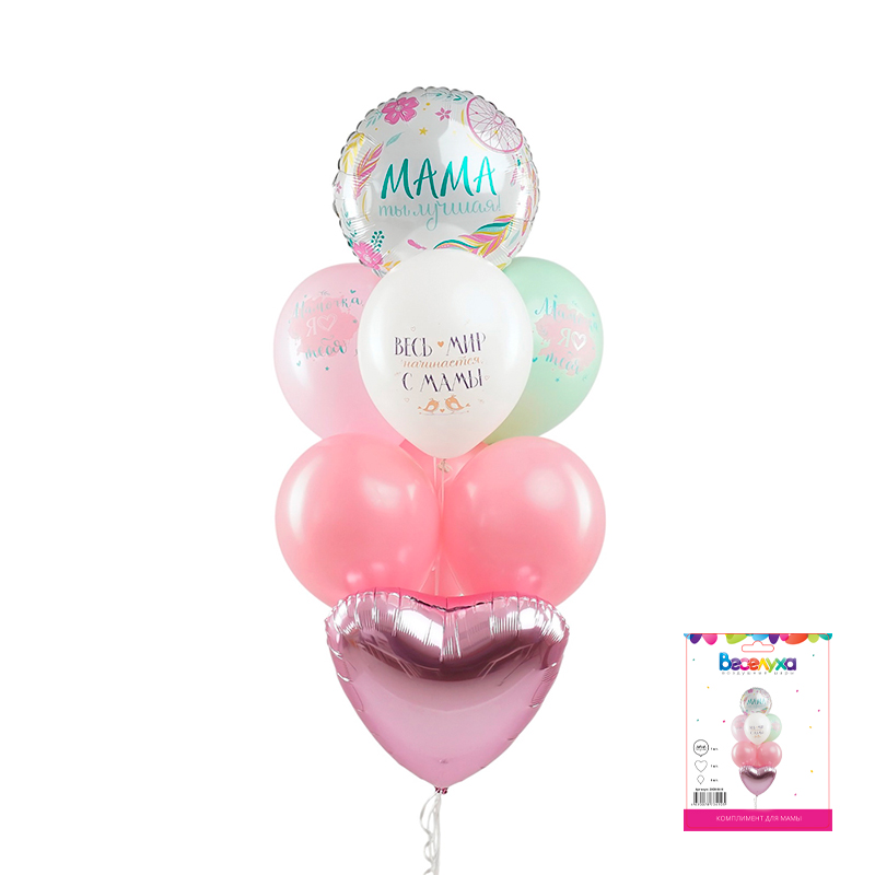 Комплект воздушных шаров "Комплимент для мамы" отлично подойдет для оформления праздника в честь дня матери или для поздравления мам.