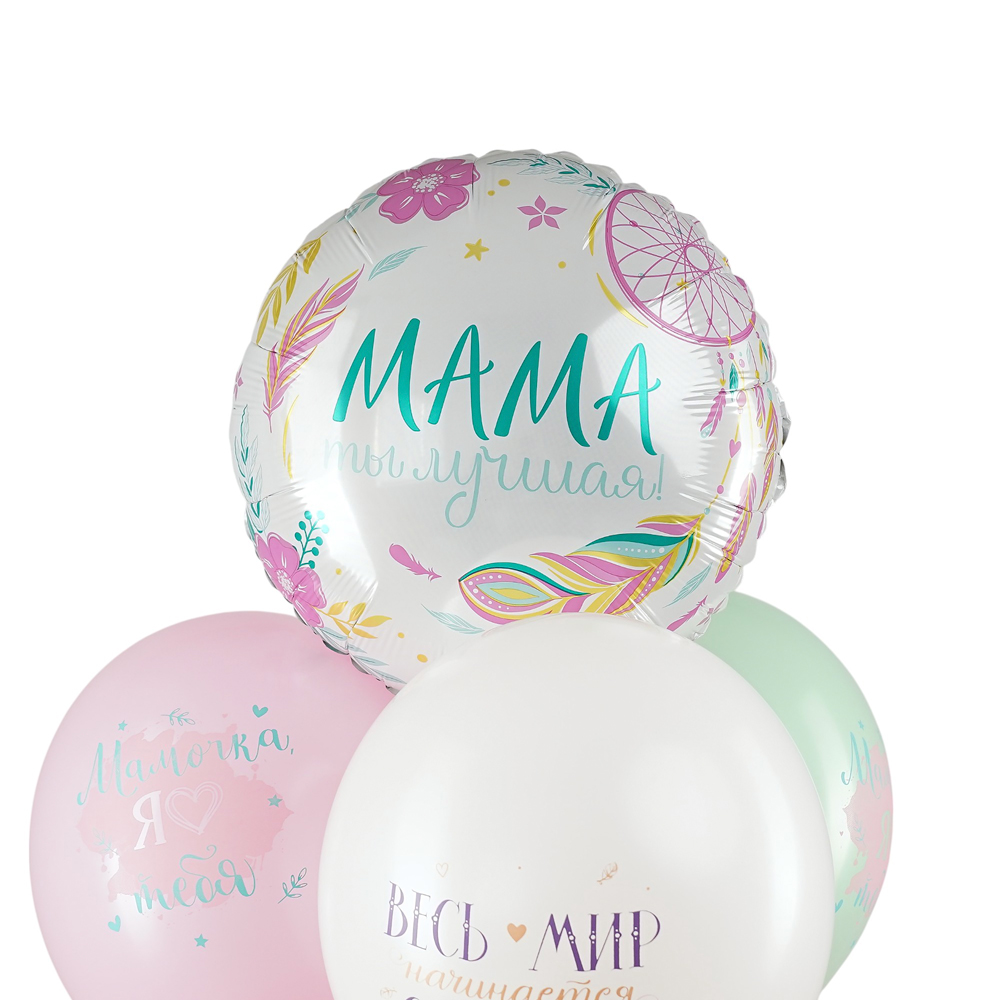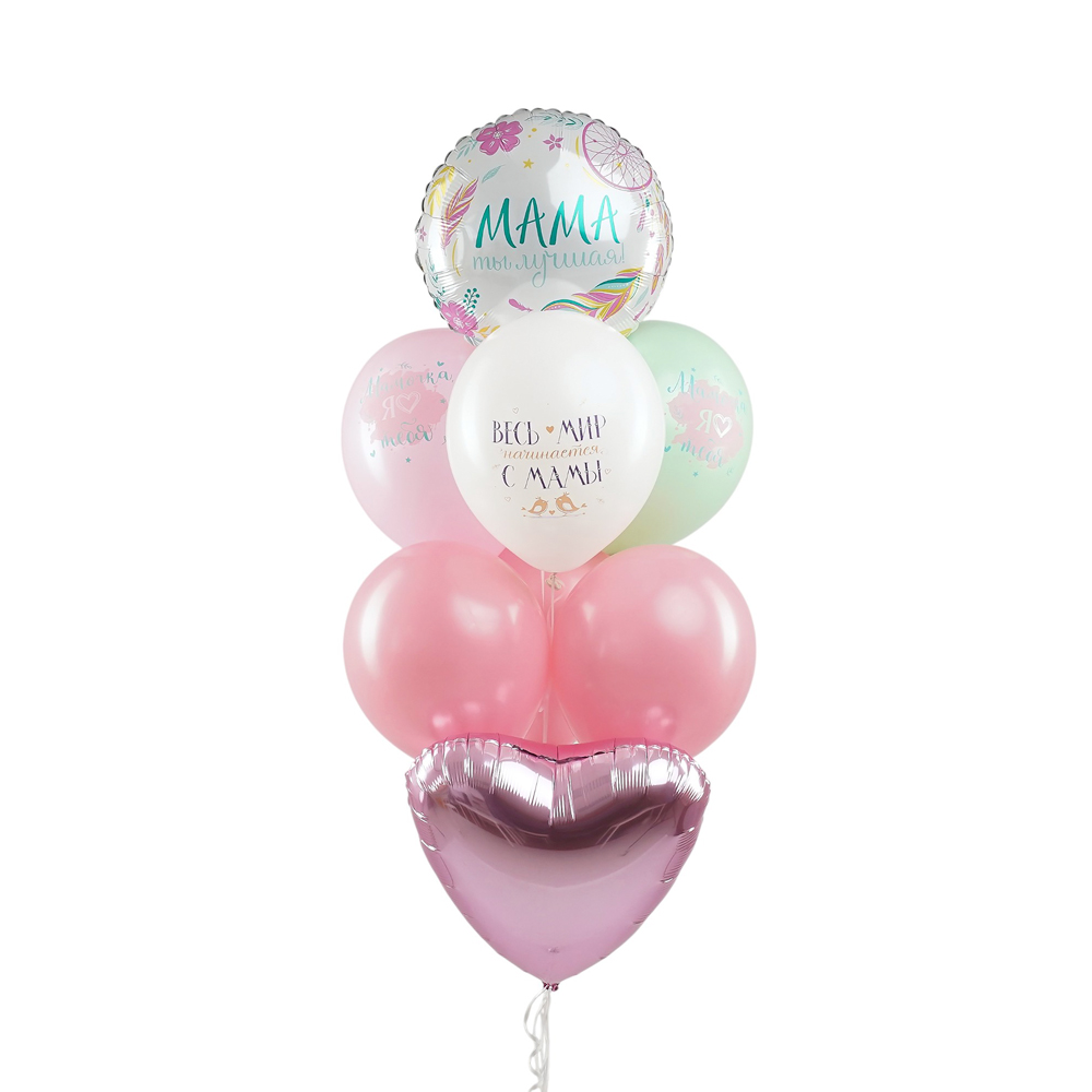 Надписи на шарах: "Лучшая мама в мире", "Весь мир начинается с Мамы", "Мамочка я люблю тебя"