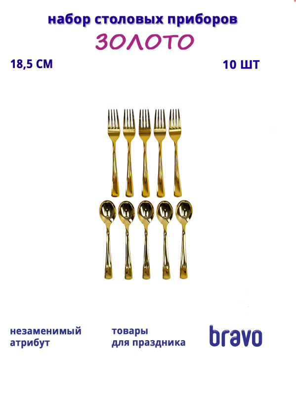 Набор столовых приборов станет идеальным спутником для любого мероприятия, будь то пикник на свежем воздухе, праздничный банкет или уютный вечер в кругу близких. В наборе вы найдете десять изысканных инструментов: вилки и ложки, выполненные из высококачественного материала, который не только обеспечивает надежность, но и добавляет элегантности вашему столу.