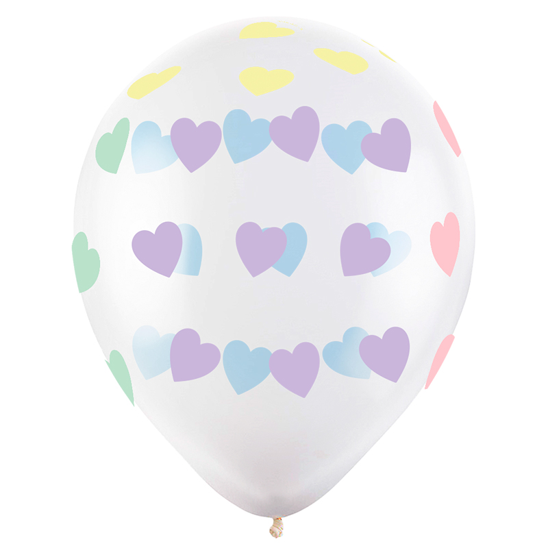 Нежные сердечки, Ассорти Пастель-Кристалл, латексный шар