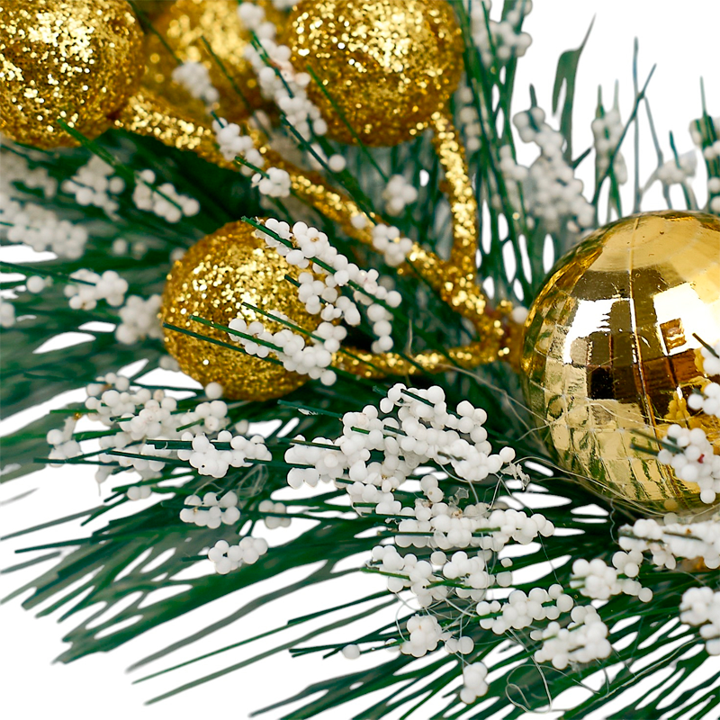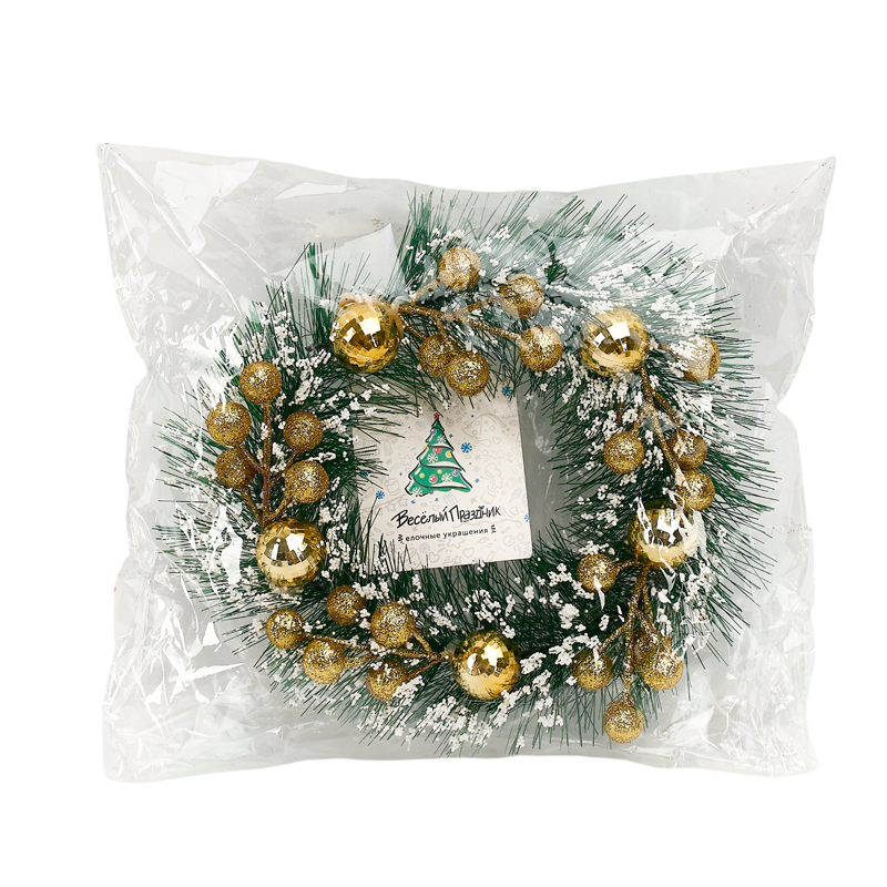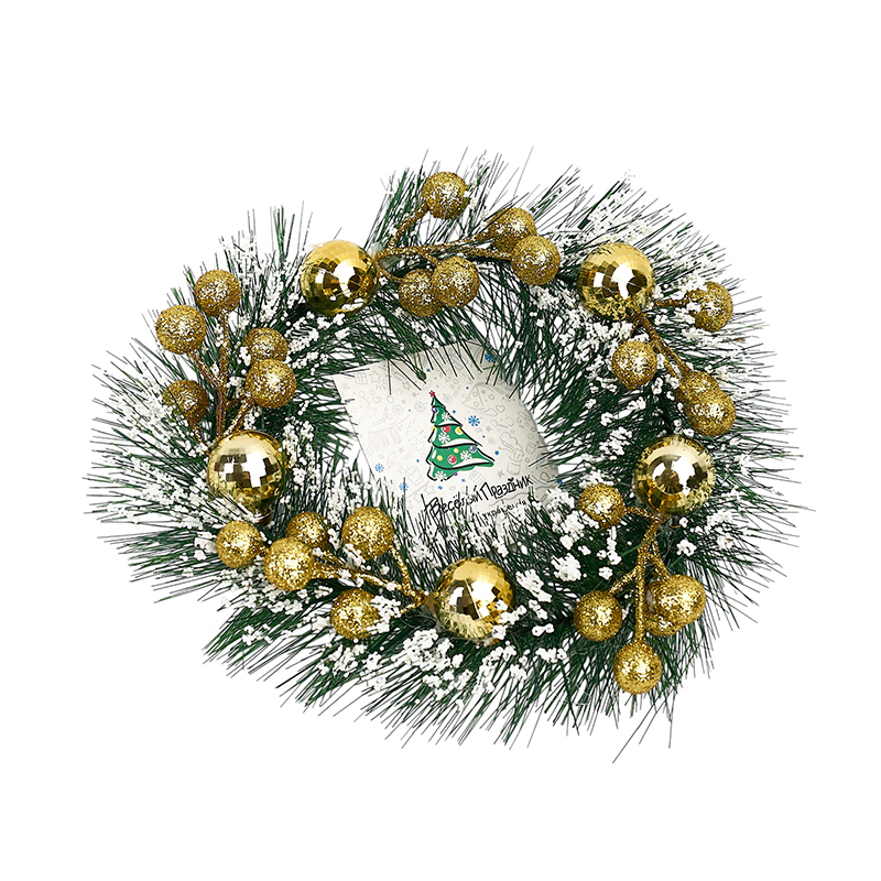 Новогодний венок с декором Заснеженный Ягоды, шары золото диско
